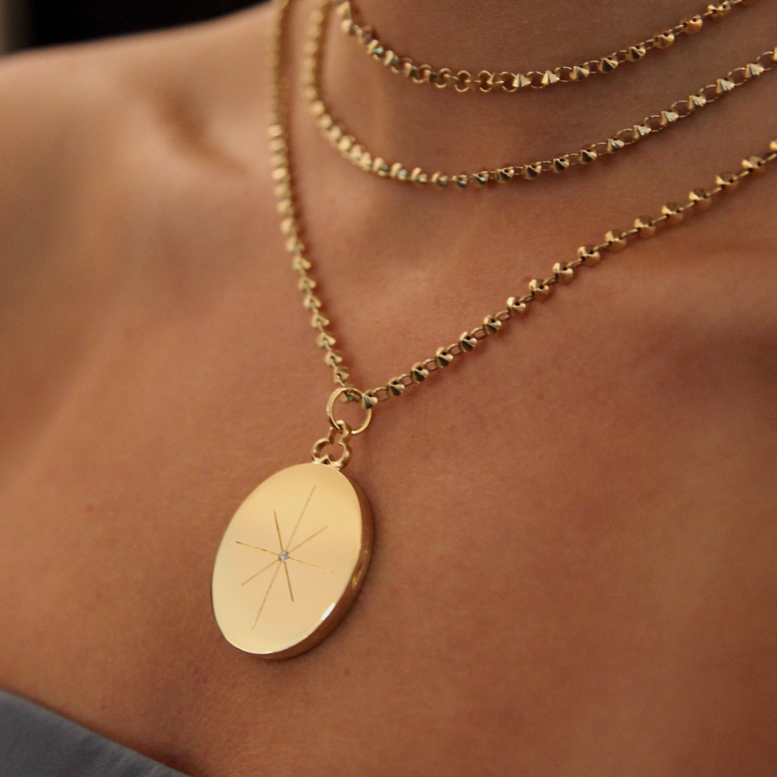 Inspired by looking up at the night sky. Our 18k gold 'North Star' Locket features 2 single solitaire diamond star - one in front and one in back. A favorite gift for graduates and new mothers, who fill it with photos of those who give their life meaning and direction. A perfect piece of meaningful jewelry that will become your inner compass wherever you go
