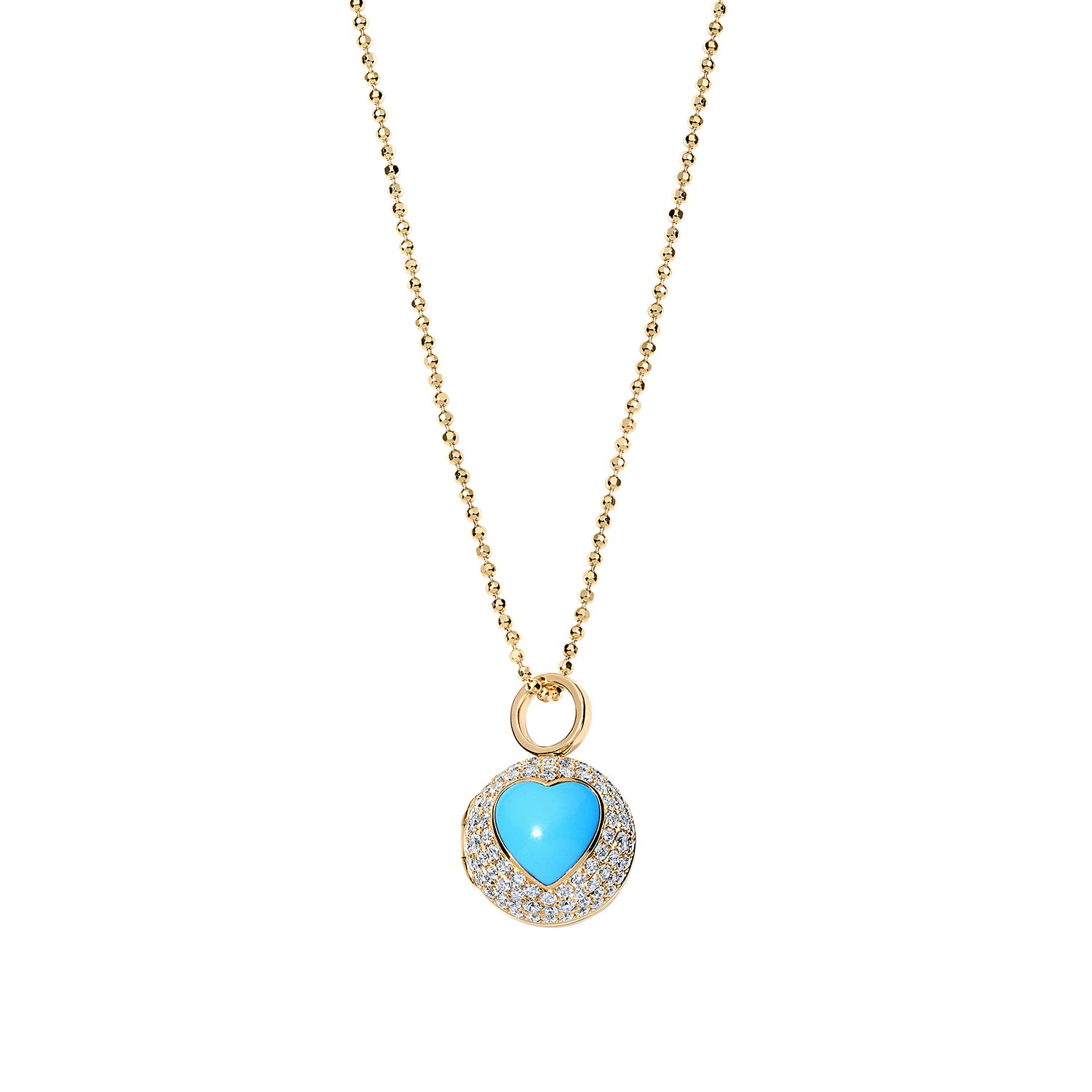 Upgrade your jewelry wardrobe with our Turquoise & Diamond Peekaboo Heart Locket. This locket showcases a stunning giant turquoise heart, which opens to reveal your favorite photo. It is the most unique gift for a special woman you love.