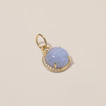 Reach for the moon and land among the stars with our Blue Lace Agate Moon Charm. Crafted from 18k gold, the charm showcases a gorgeous cabochon center stone. Look closely and you'll notice that the diamond half halo is actually a crescent moon.