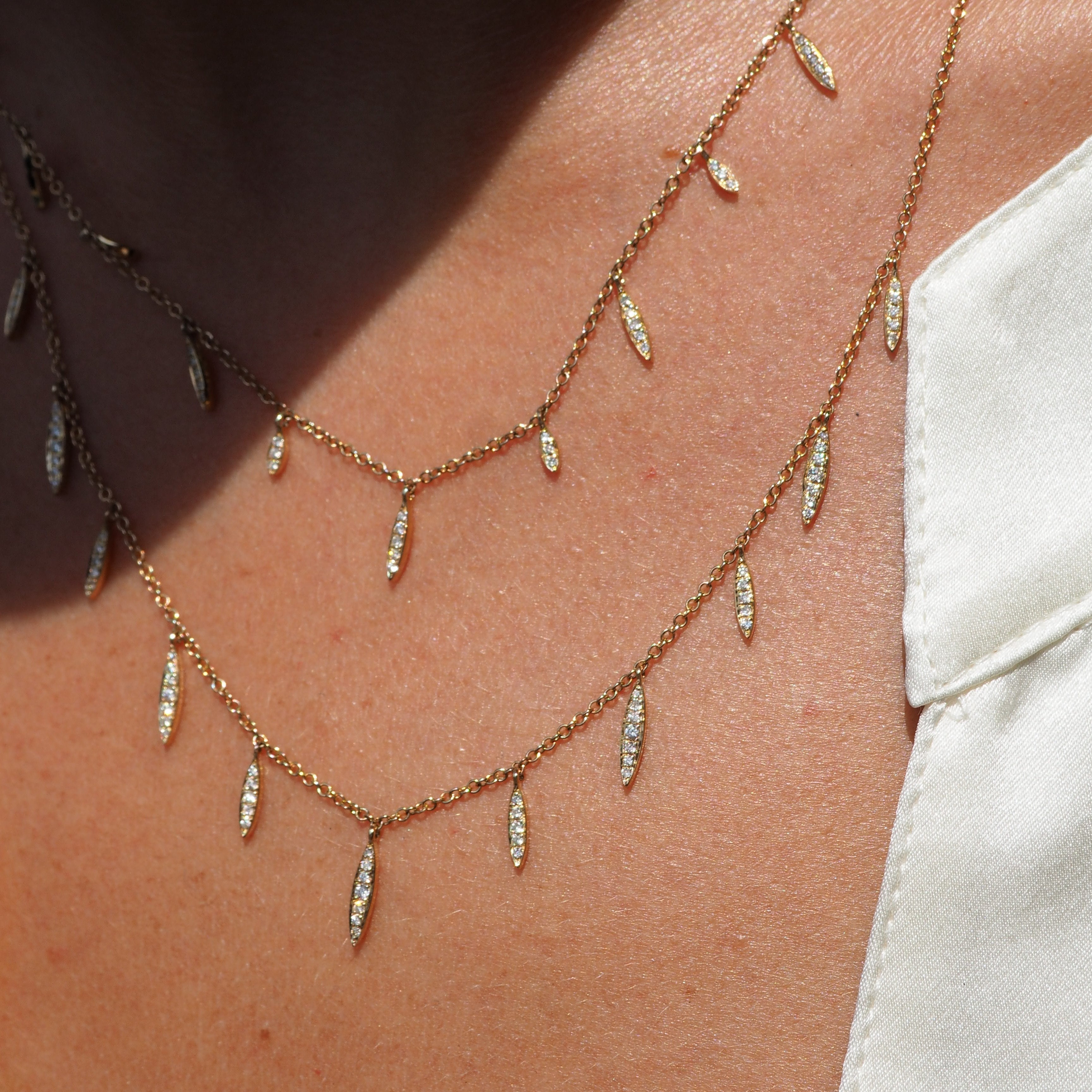 The Deluxe Eleven Wishes Necklace is inspired by the magic of 11:11, a symbol of manifestation and new possibilities. A luminous reminder that what you seek is already on its way. We love this necklace for its second-skin quality and the way the diamonds capture the light.