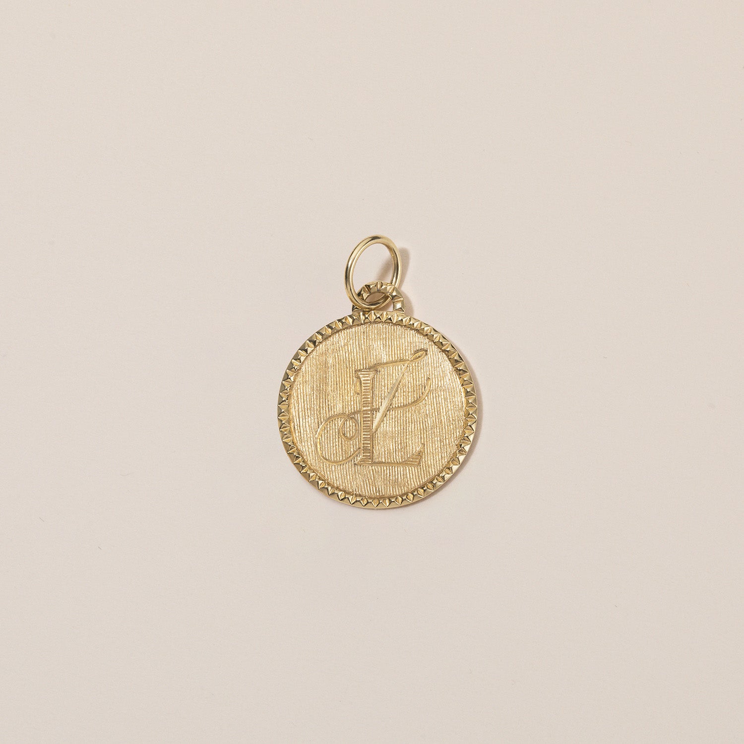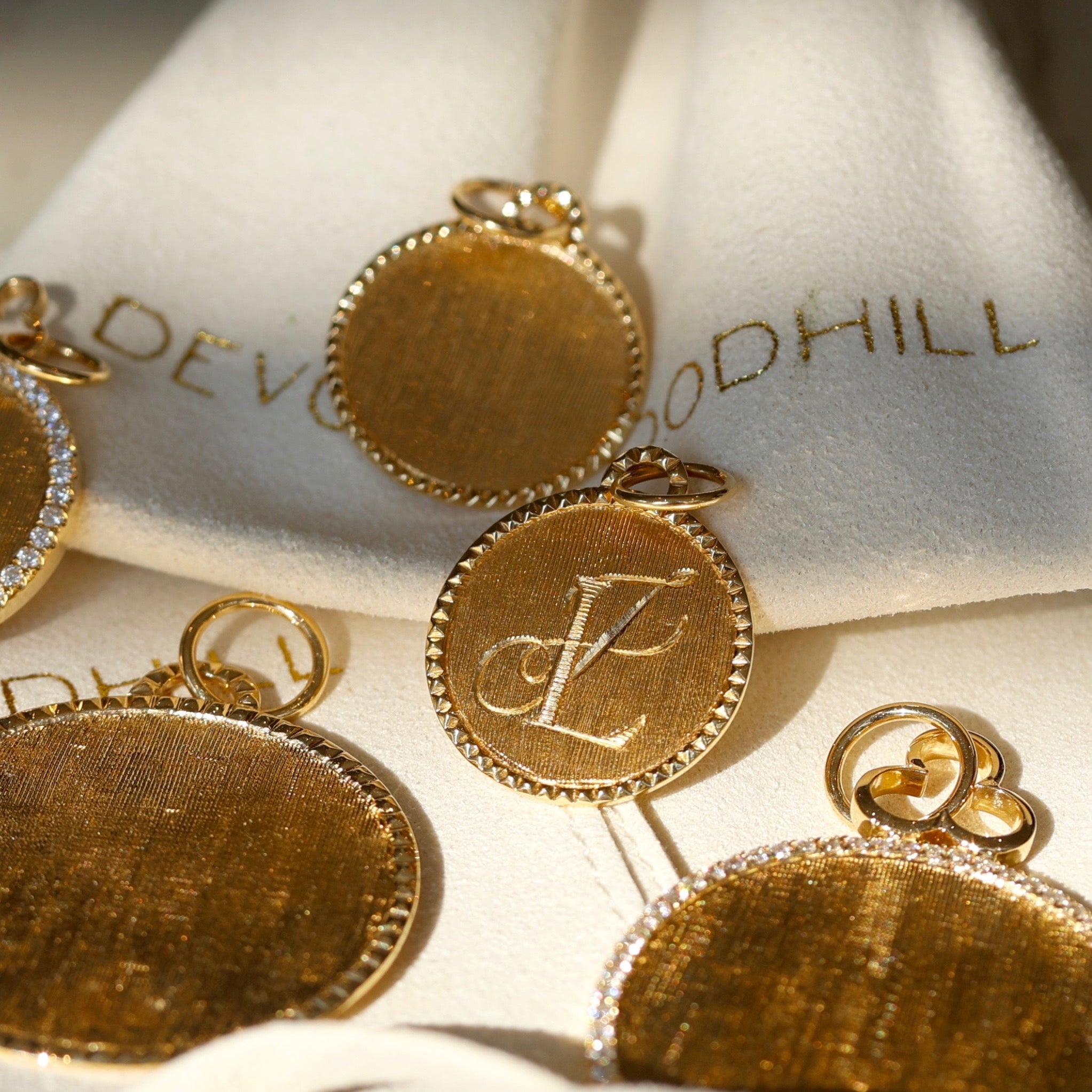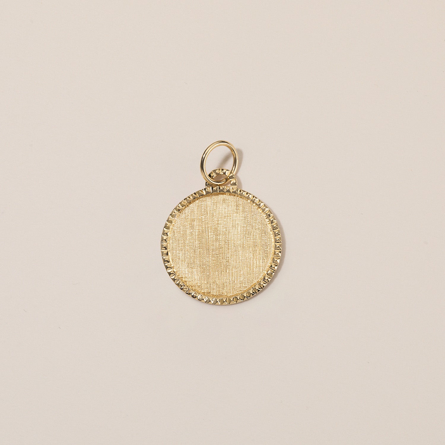The Classic Stud Disc Charm is a statement of strength and elegance, crafted in 18k gold. Its finely studded edge catches the light with a quiet opulence, a timeless emblem of trust, meant to be carried always.