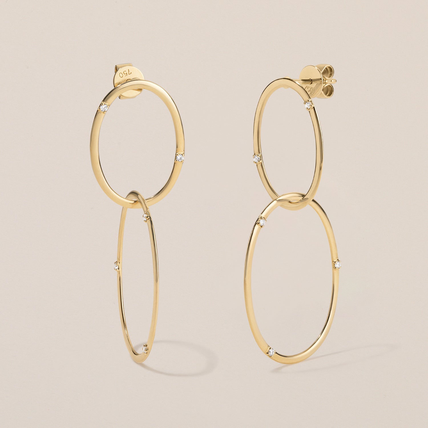 Experience the impact of our stunning diamond-studded Classic Oh! Earrings in 18k gold. These interlocking earrings are like hoops, but twice as nice, making them the perfect day-to-night accessory.