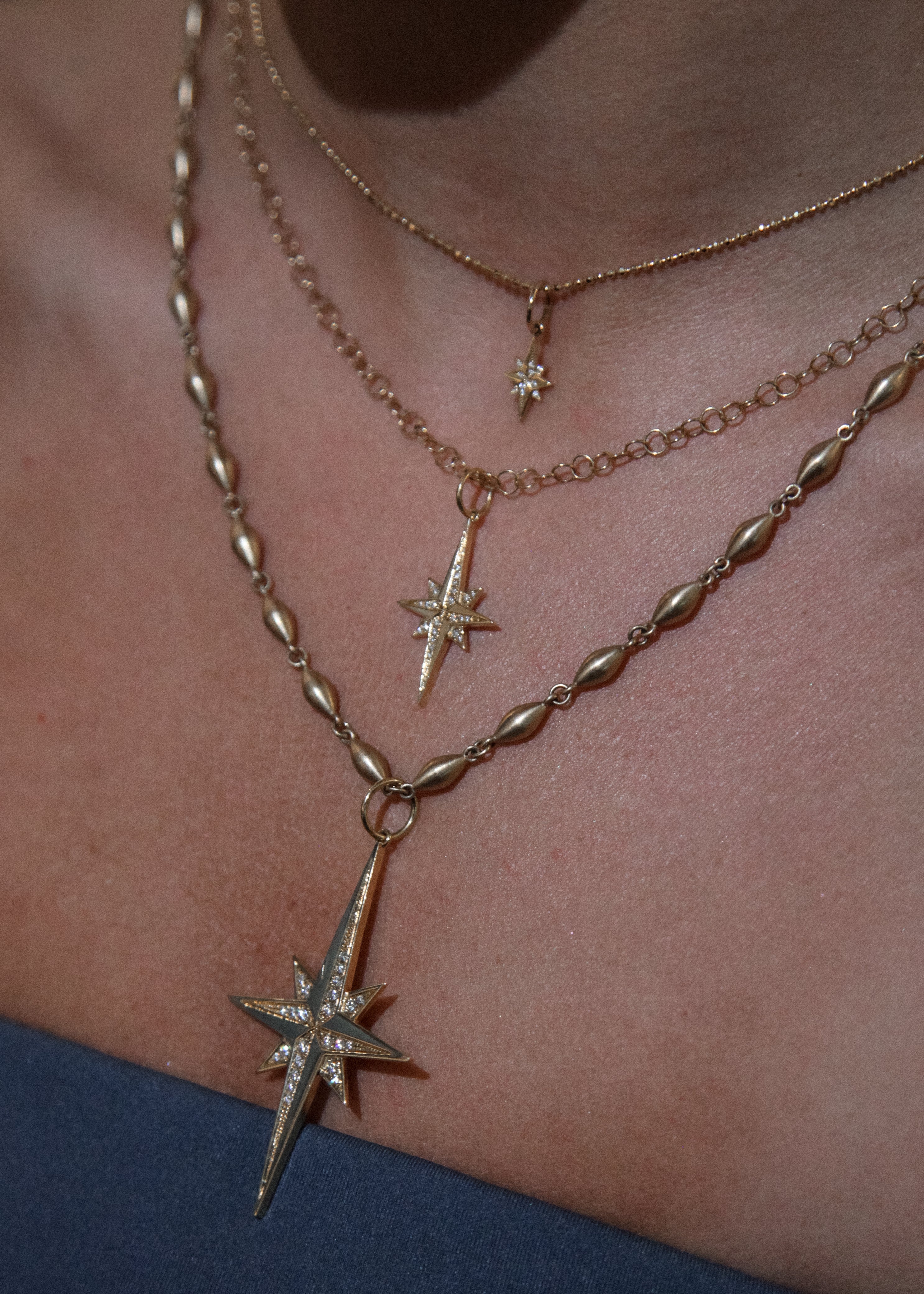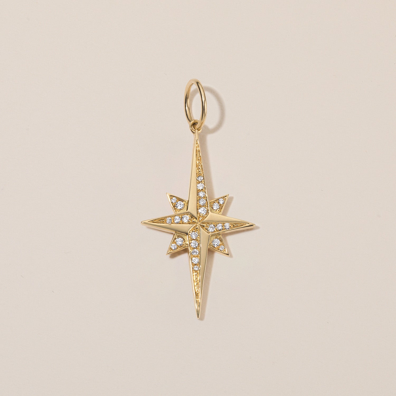 Our Classic Stellar Charm is a sculptural north star set with brilliant diamonds. A symbol of purpose and direction, it shines with clarity and intention. A loving reminder to follow your path and trust in where it leads.