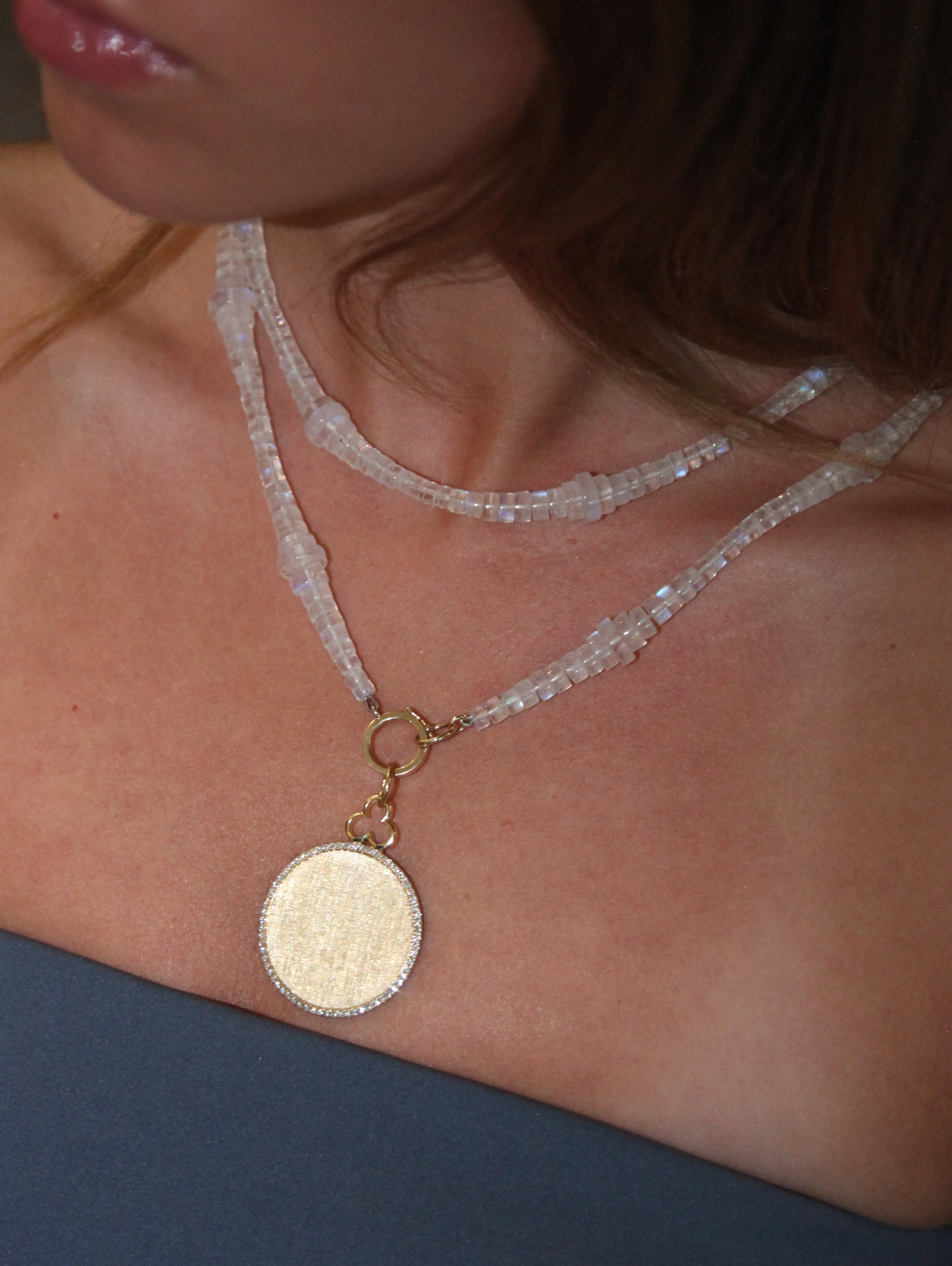 An elevated and substantial stone chain necklace inspired by our founder Melissa's favorite vacation destinations, the Button Beaded Necklace is elegant worn long, unbelievably chic wrapped around twice, and uniquely meaningful with your favorite charms strung from the gold clasp.