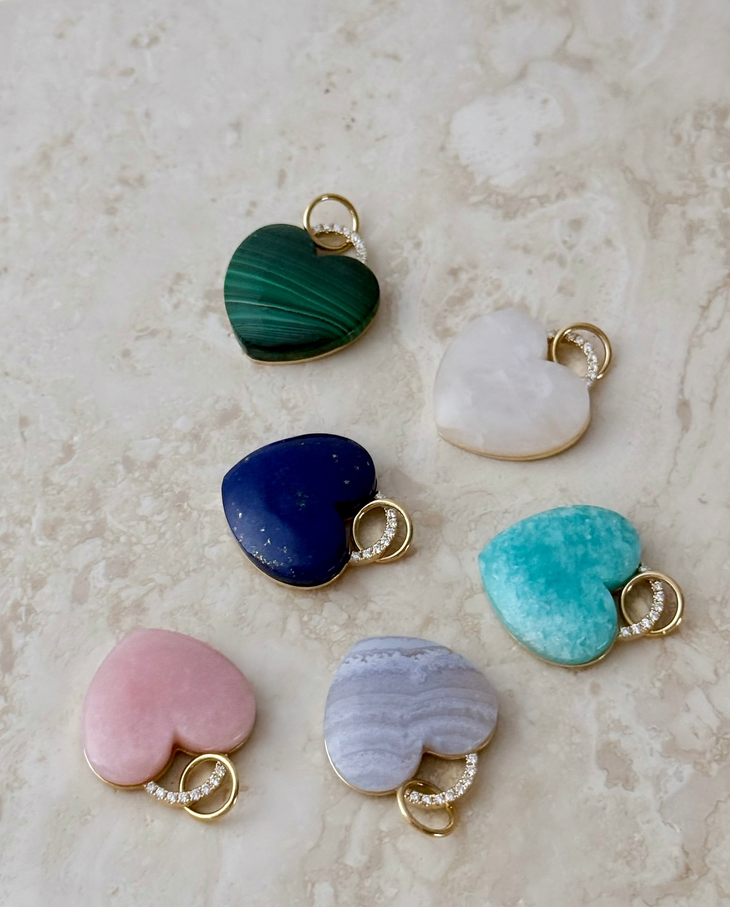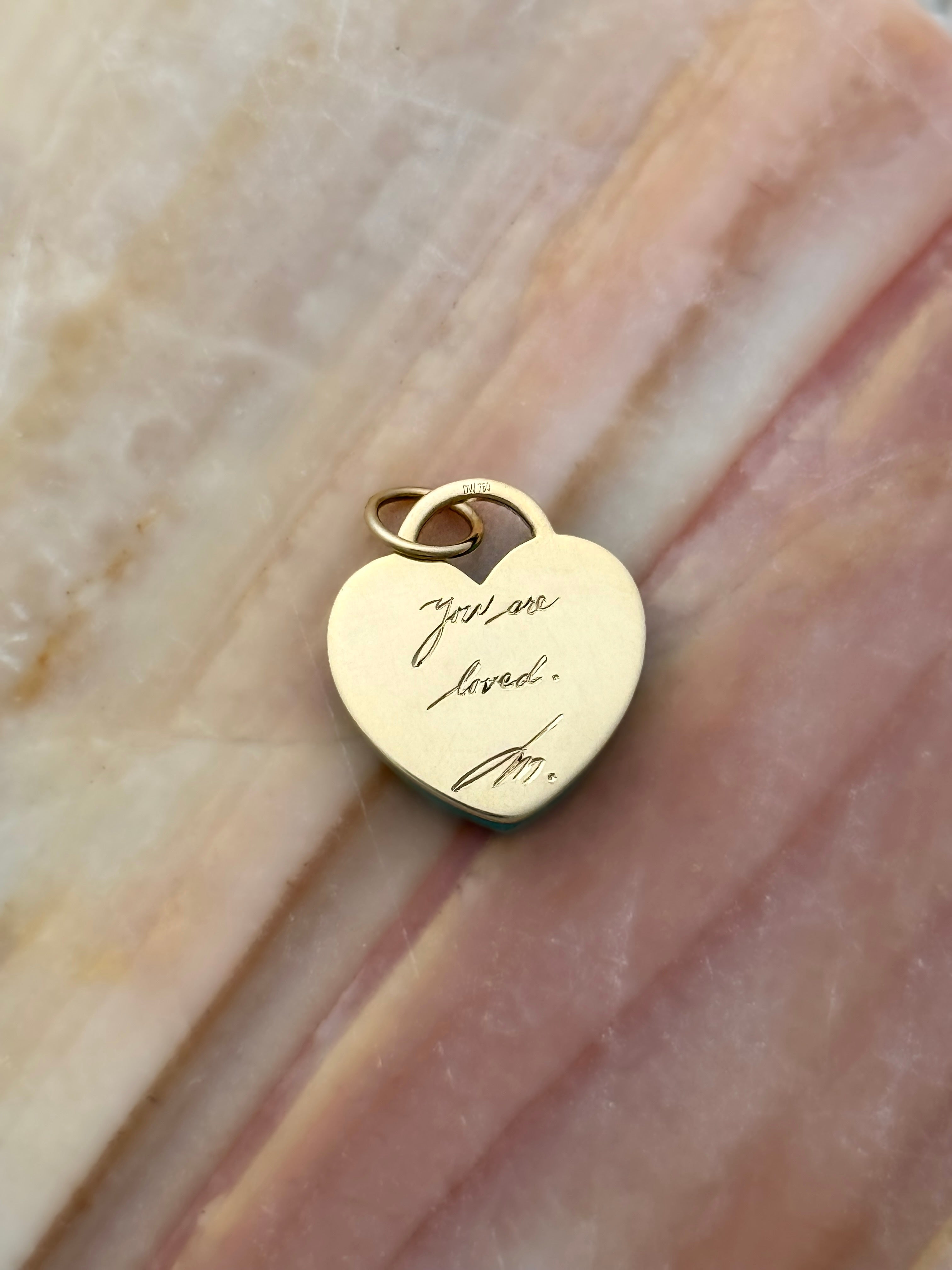 The Rock Solid Heart Charm — a balance of strength and sentiment. One side, a solid natural stone, grounding and enduring. The other, polished gold, smooth and reflective, ready for engraving. A symbol of stability, meant to be carried close.