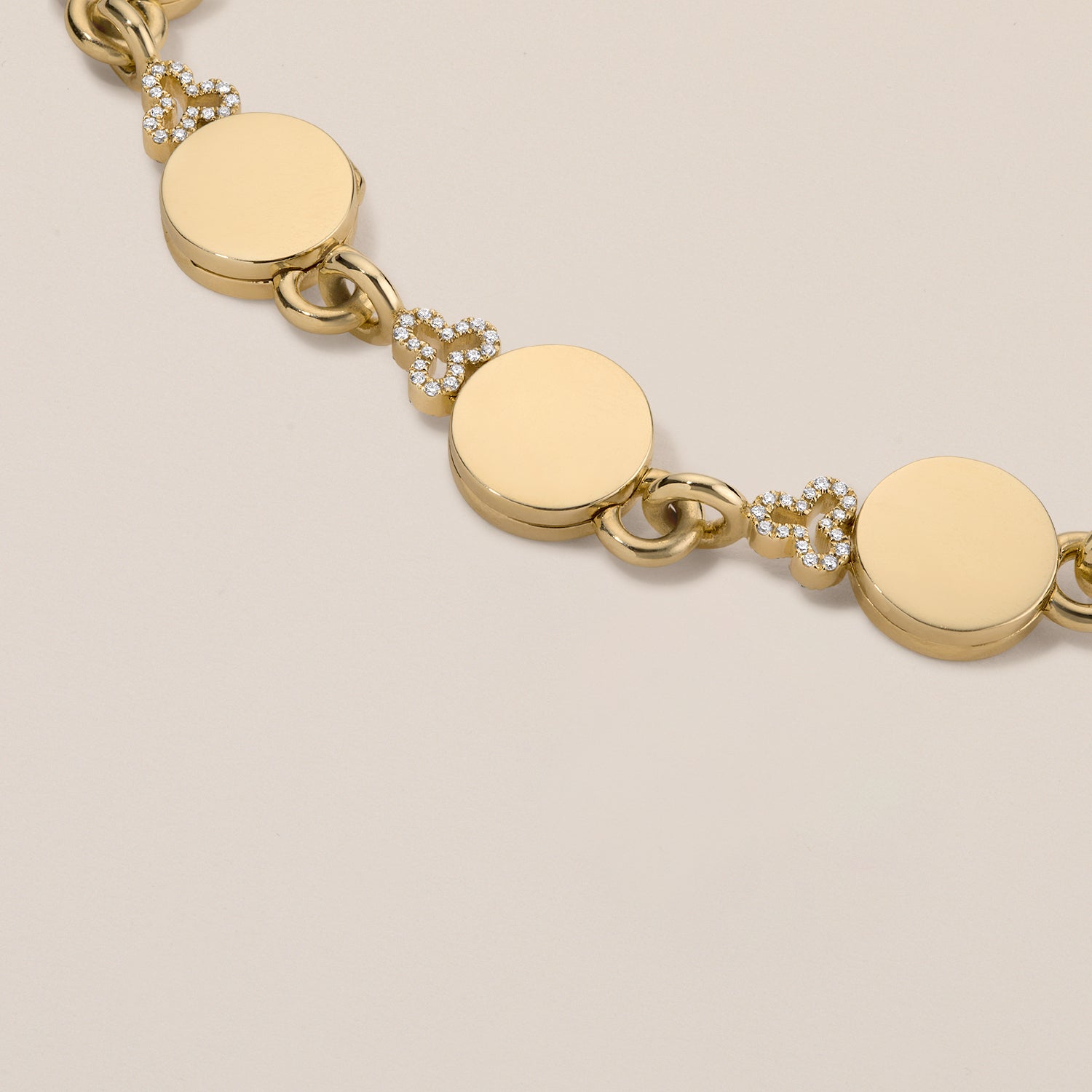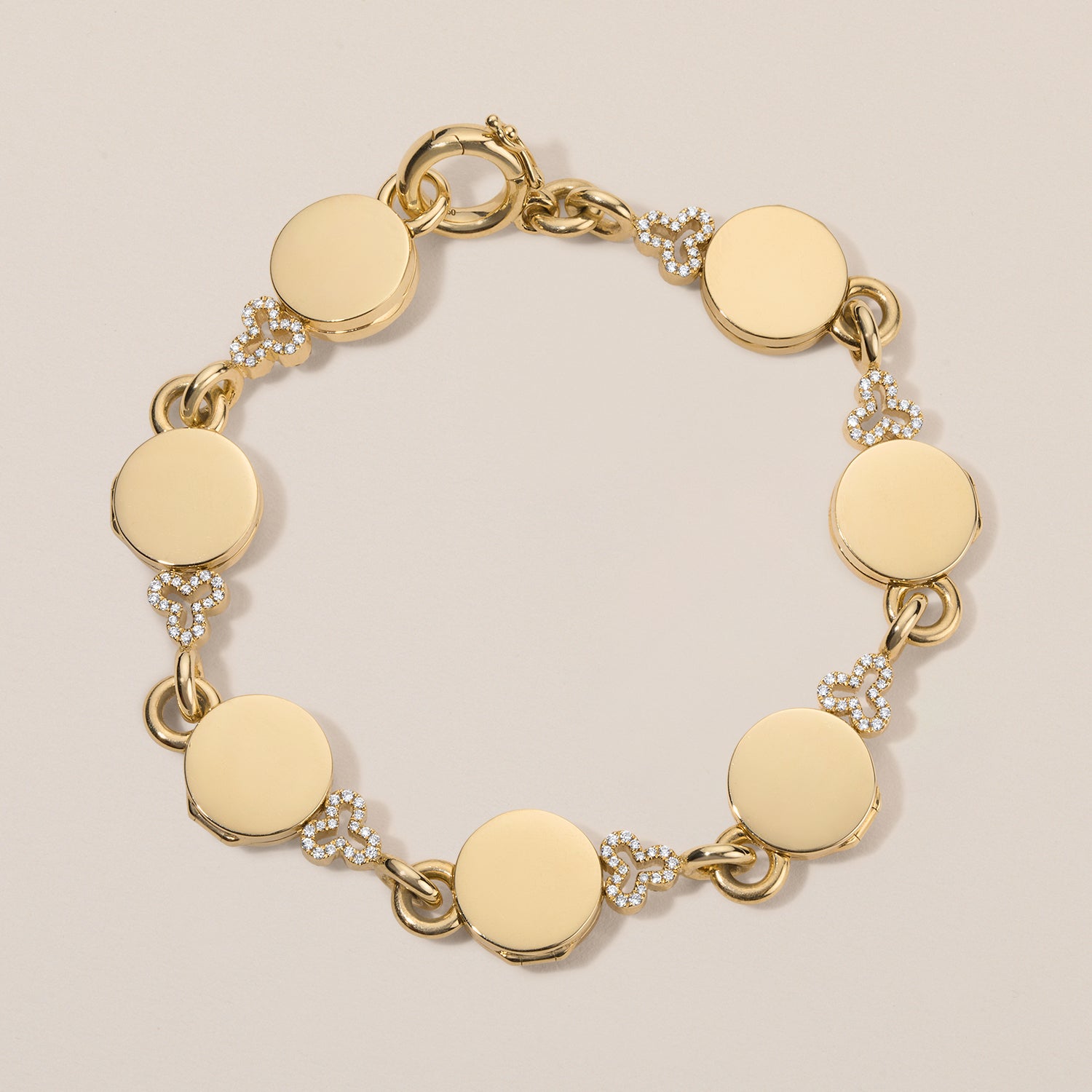 Inspired by Jane’s great-grandmother’s cherished vintage bracelet, the Locket Line Bracelet is monumental, an heirloom reborn. Crafted entirely of solid 18k gold mini lockets, it’s a golden archive of love. Each locket is waiting to be filled with the faces and moments that make a life extraordinary.