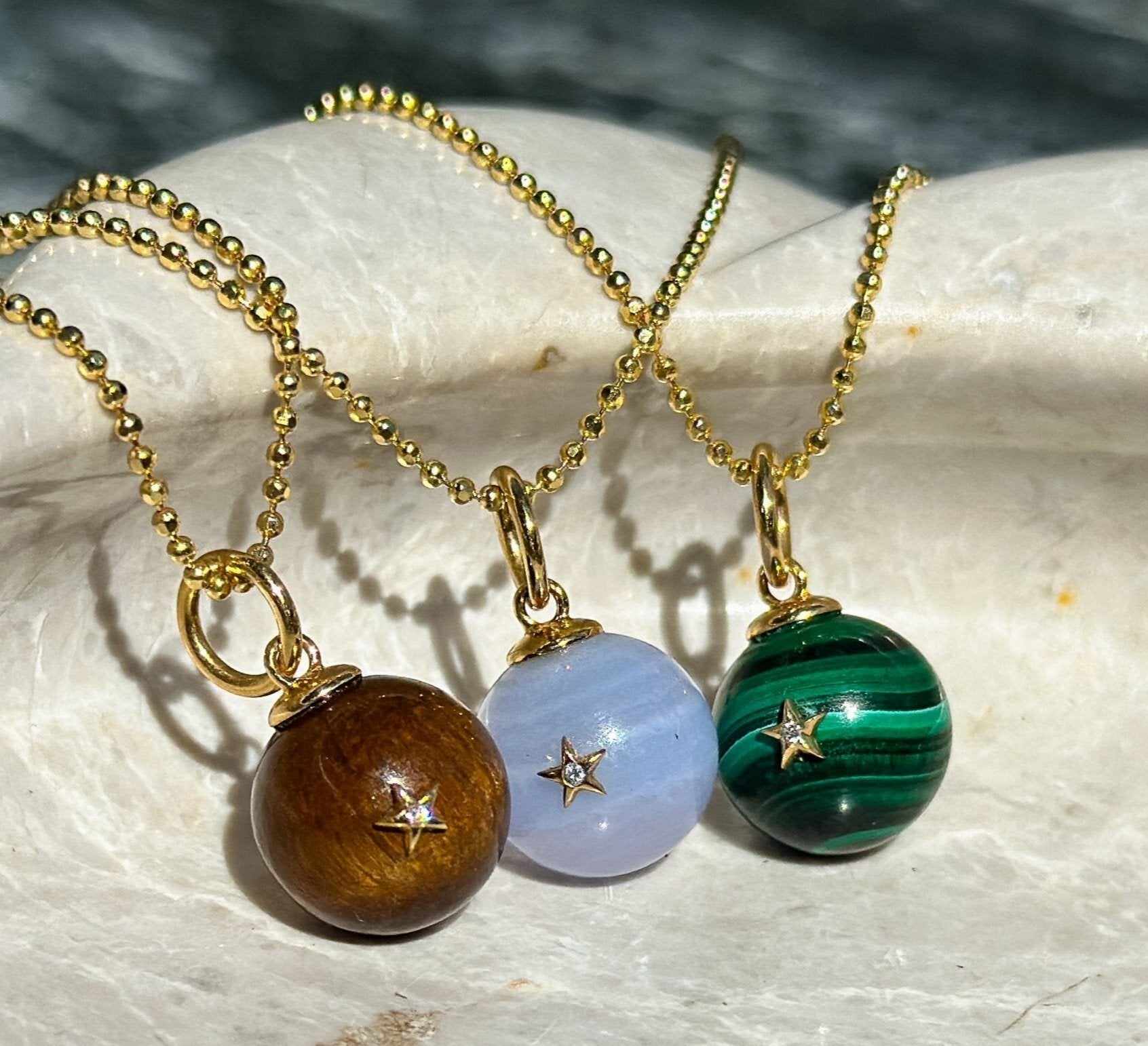 Adding to the unique beauty of these pieces, no two natural stones are alike.