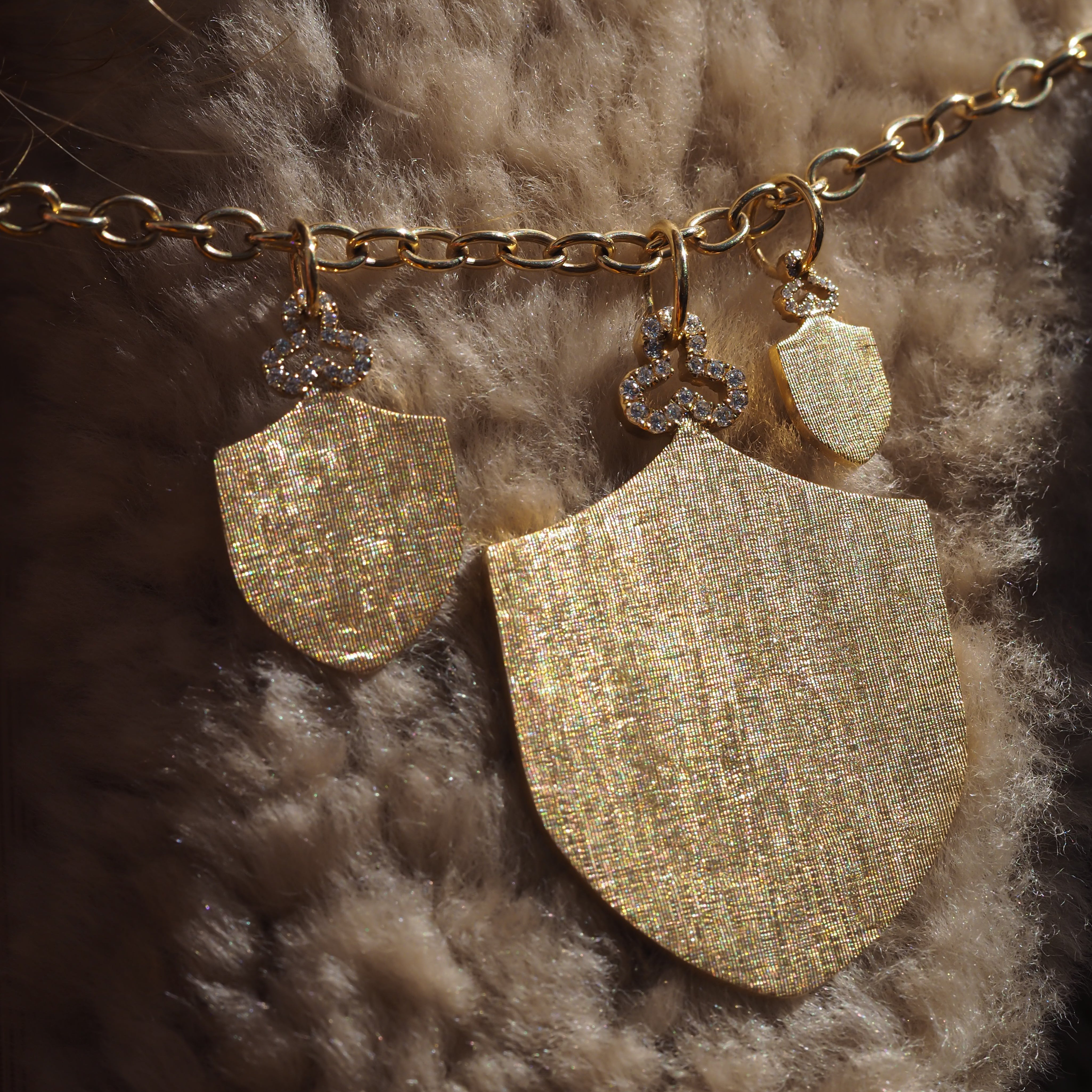 A golden whisper of strength, the Mini Ward Charm distills protection into its purest form. Crafted in solid 18k gold—shiny on one side, our signature Florentine on the other, it's a delicate reminder that even the smallest shield can hold great power.