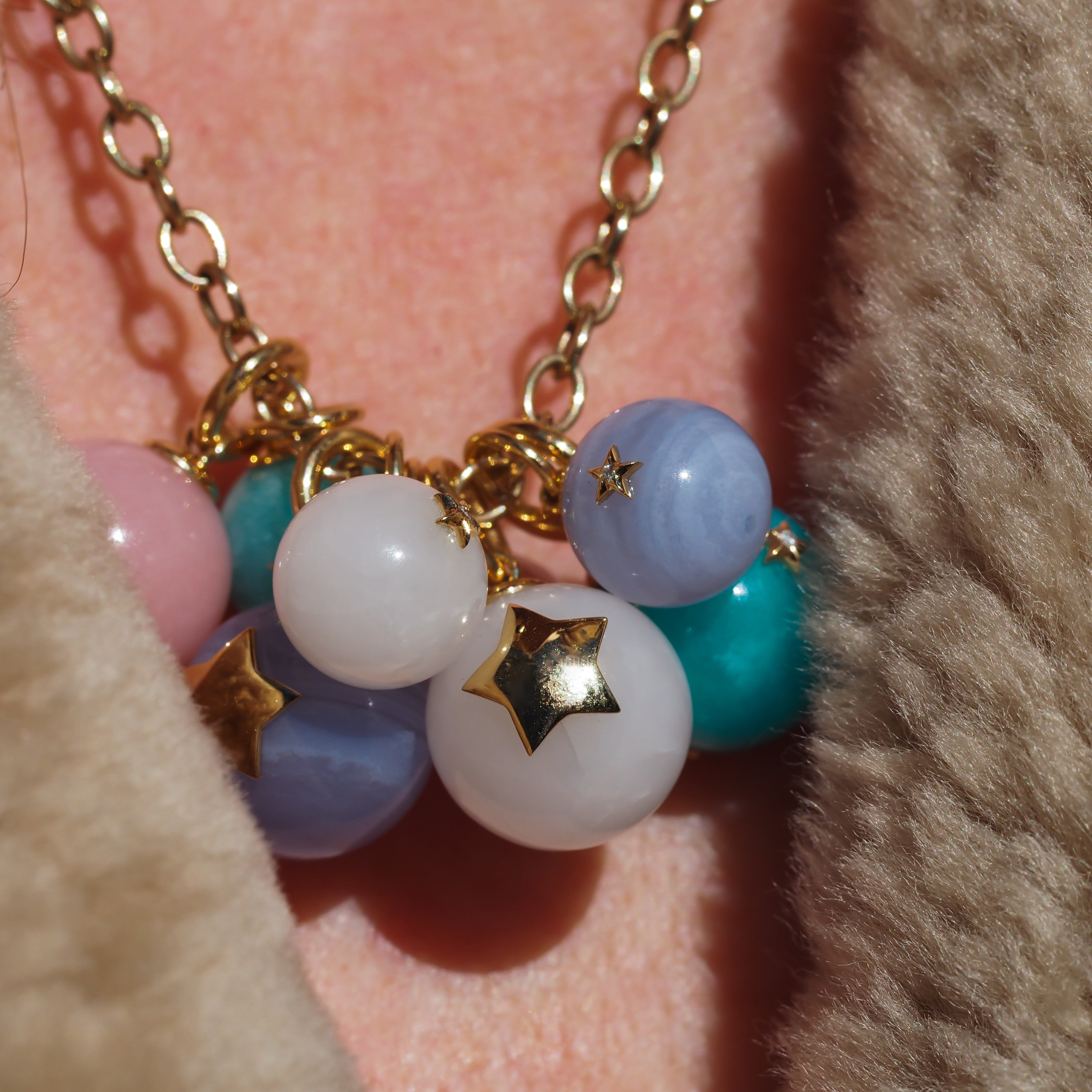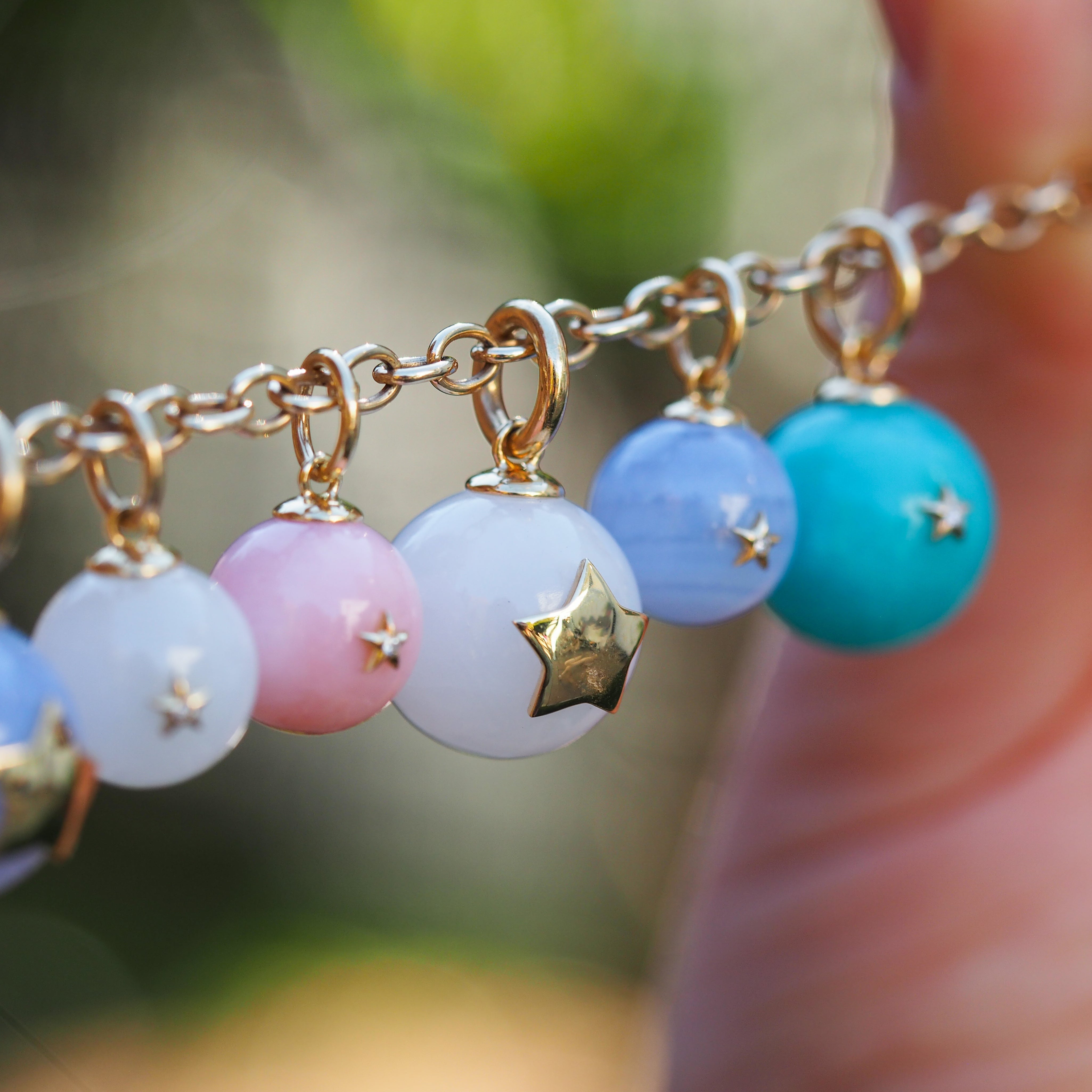 The Superstar Charm is a celebration of self-love and shine. This White Agate orb charm features a tiny diamond star on the front and a larger gold star on the back, ready to be engraved or kept in its pure, glowing form. Inspired by the joy of giving yourself that gold star, it’s a reminder that the brightest recognition comes from within.