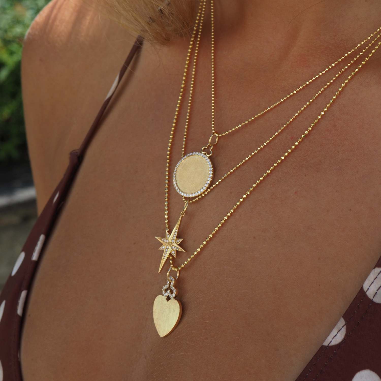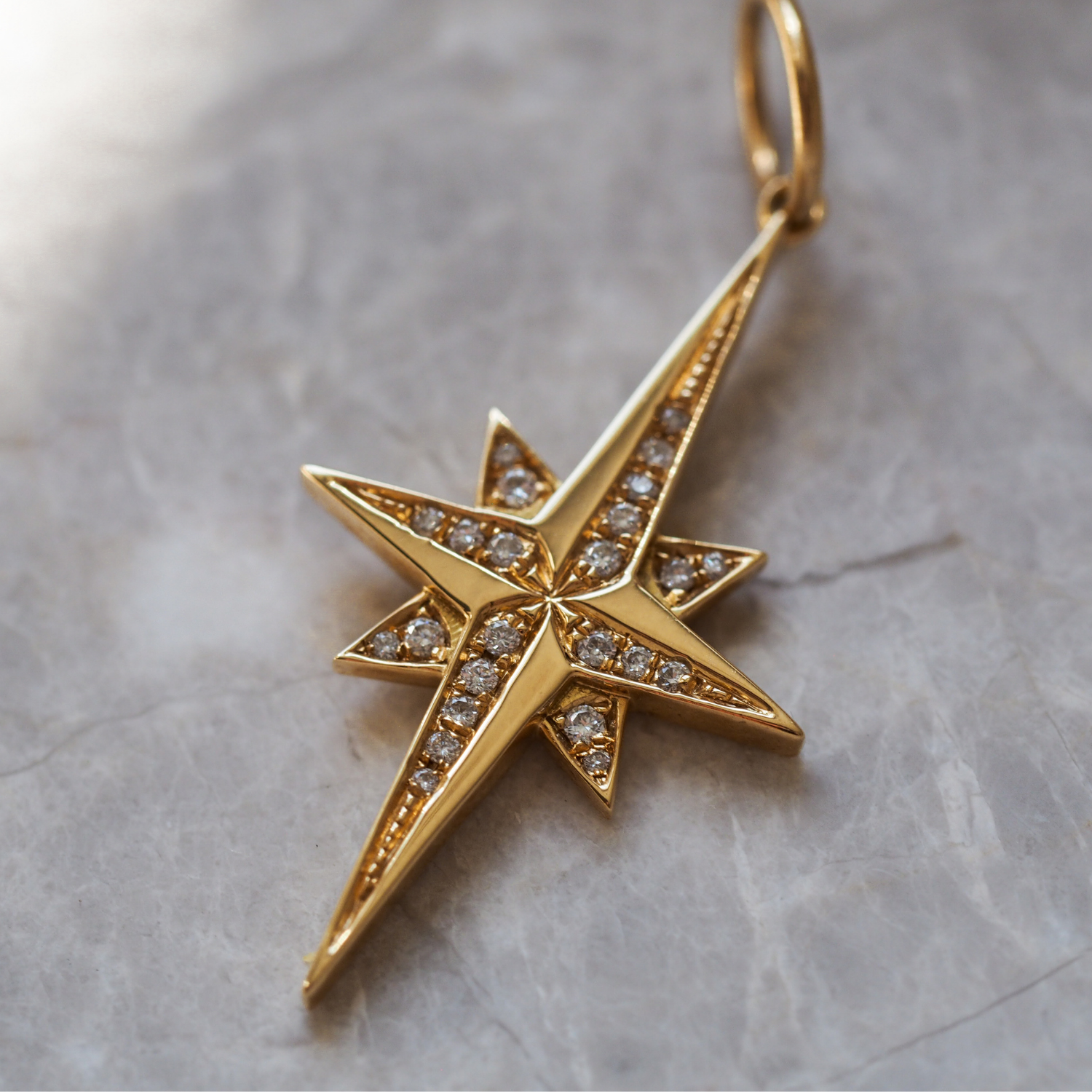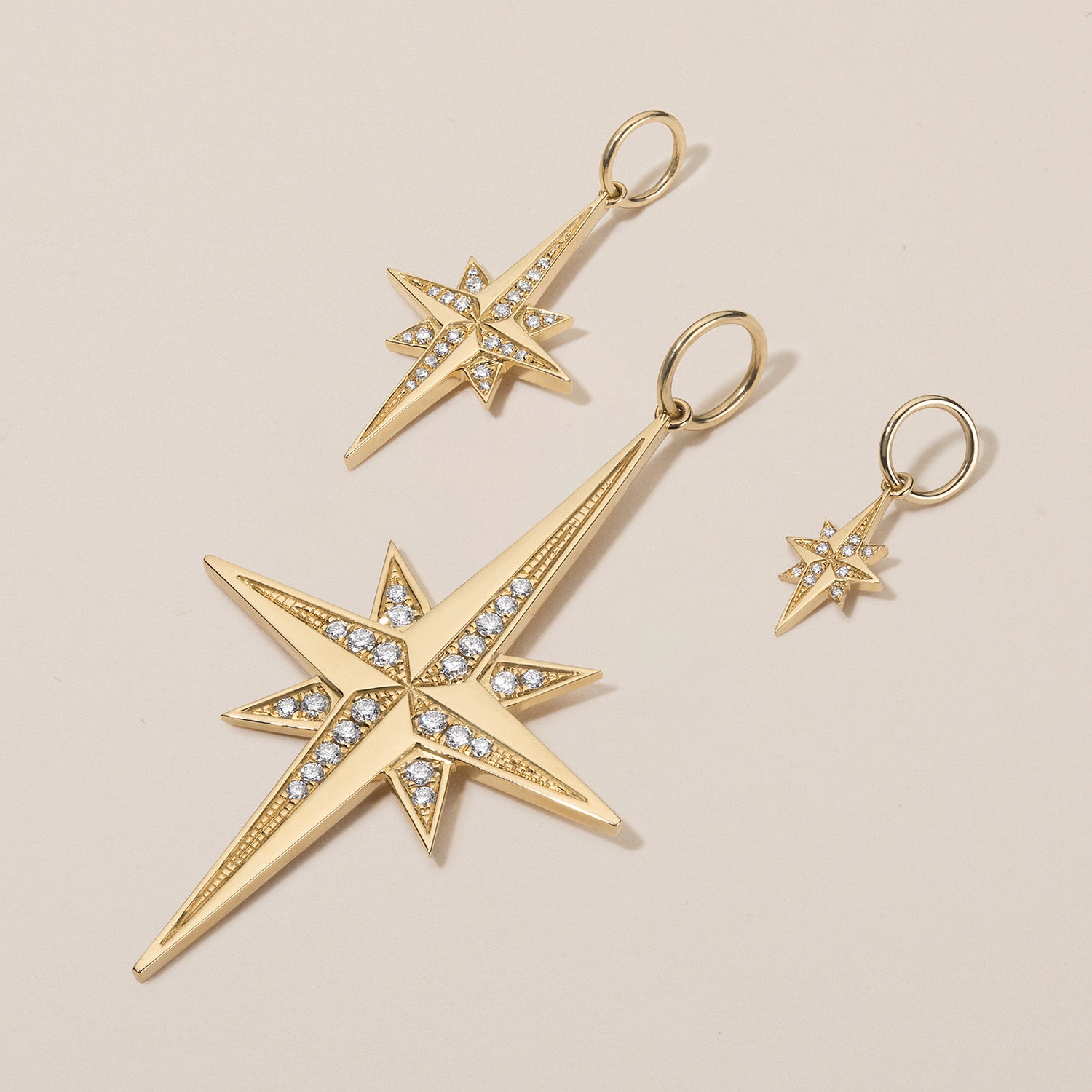 Our Classic Stellar Charm is a sculptural north star set with brilliant diamonds. A symbol of purpose and direction, it shines with clarity and intention. A loving reminder to follow your path and trust in where it leads.