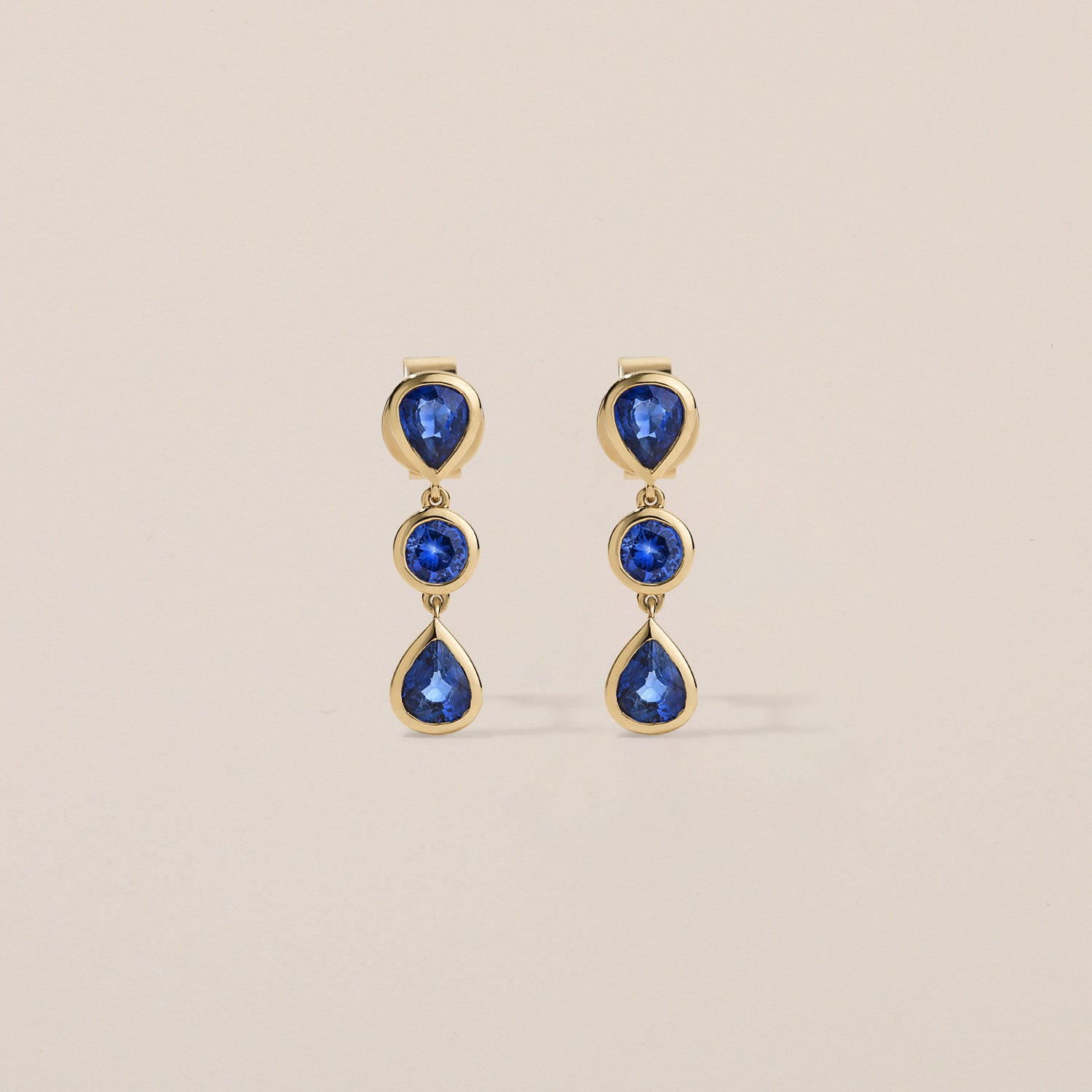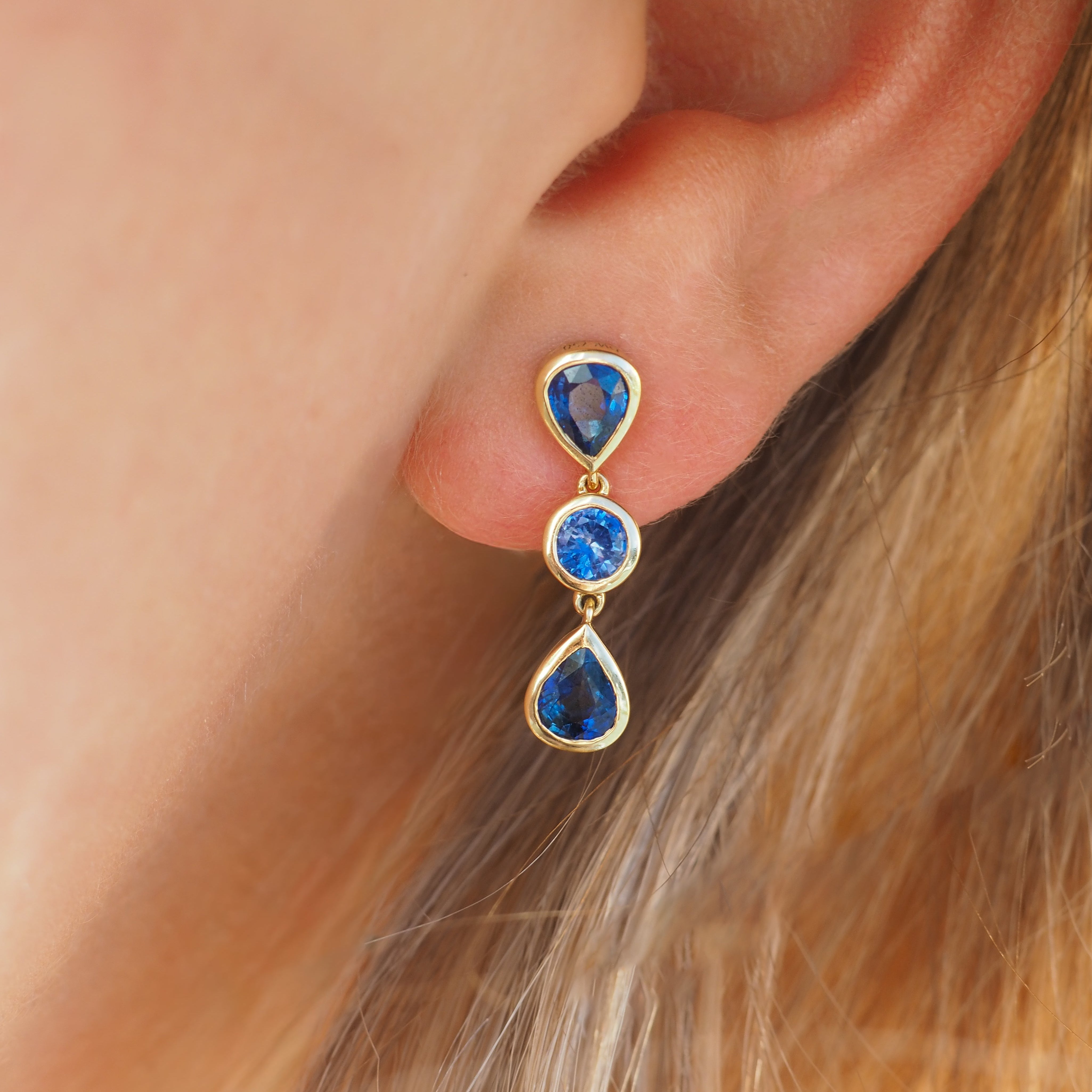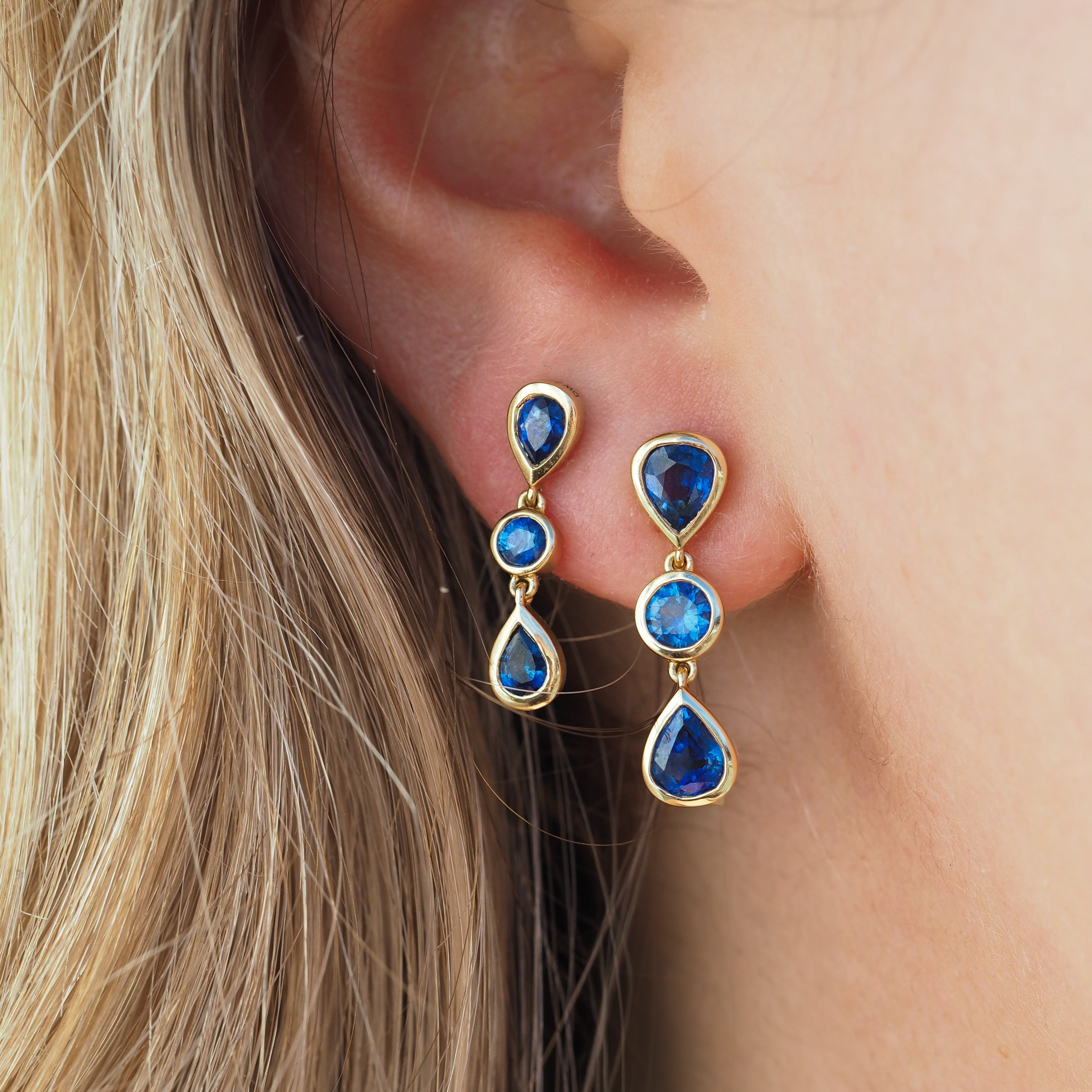 Here comes the rain again. Blue Sapphires falling like a good synth riff. A shower of bright white diamonds, each one carrying its own unique melody. The Deluxe Blue Sapphire Raindrop Earrings are inspired by the idea that we're all raindrops forever touched and changed by our interactions. It's a reminder that we're all connected, in ways both large and small, and it's always worth taking a moment to listen.