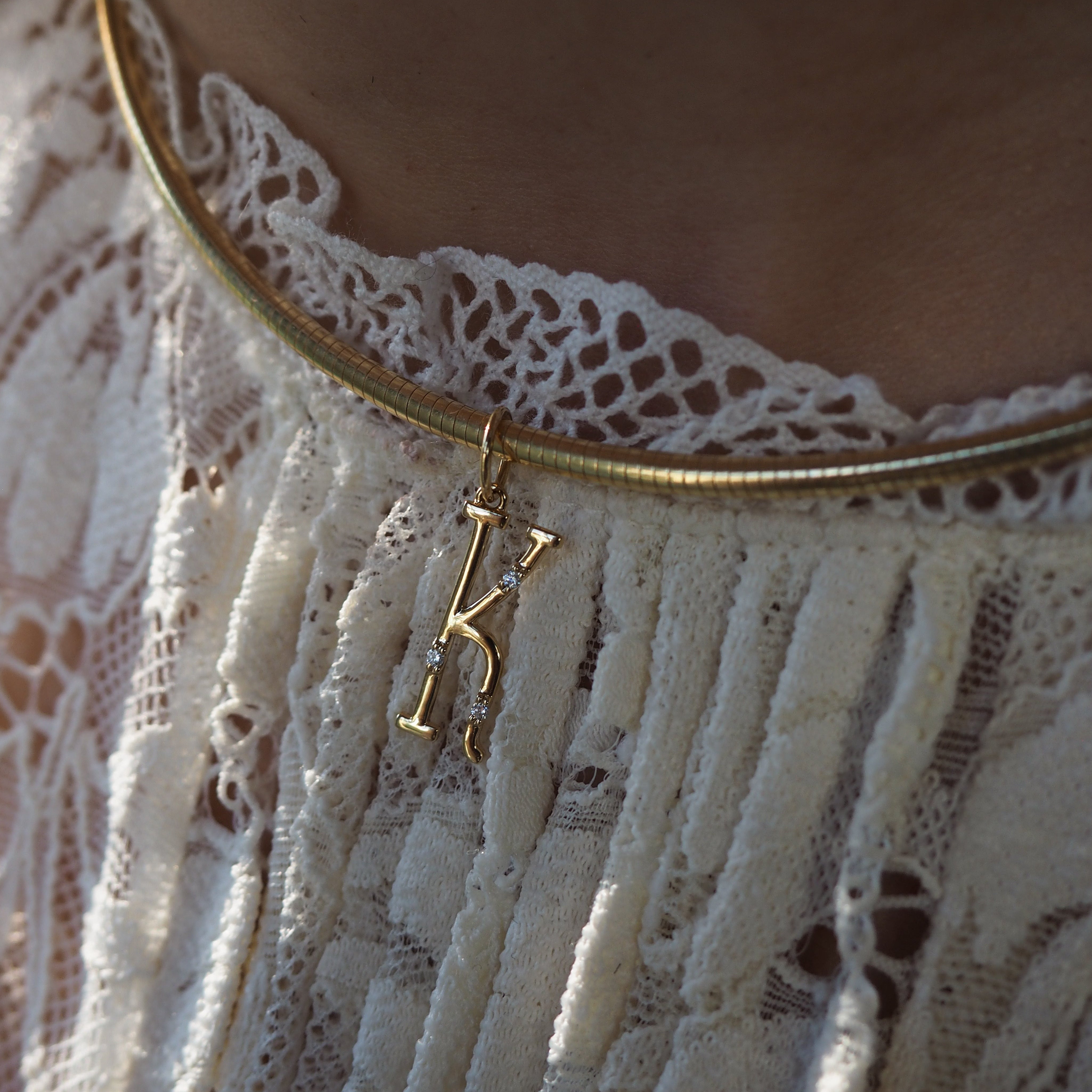 The Diamond Character Charm is a timeless initial in 18k gold, illuminated by three brilliant diamonds. A personal signature, a cherished name, a story only you can tell.