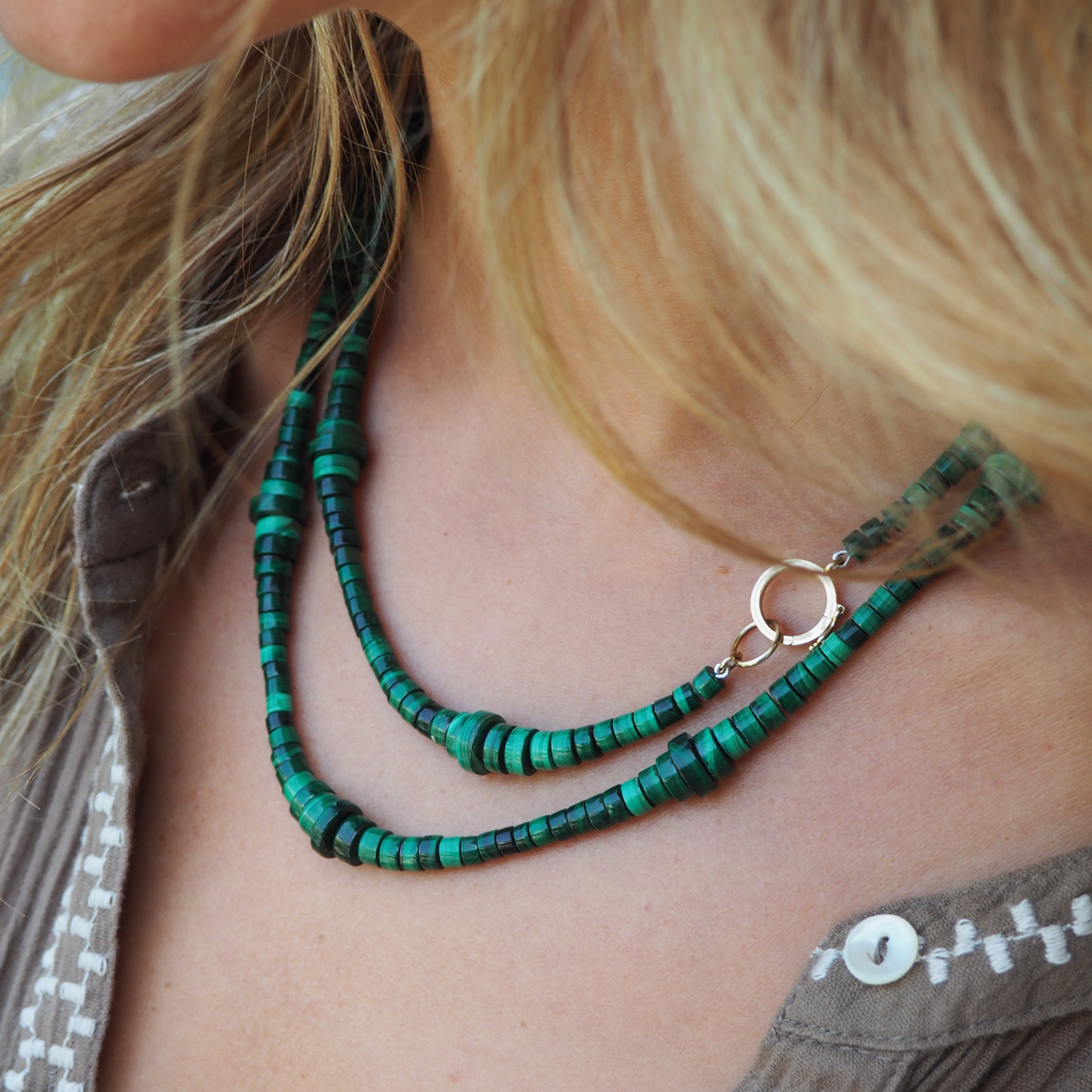 An elevated and substantial stone chain necklace inspired by our founder Melissa's favorite vacation destinations, the Button Beaded Necklace is elegant worn long, unbelievably chic wrapped around twice, and uniquely meaningful with your favorite charms strung from the gold clasp.