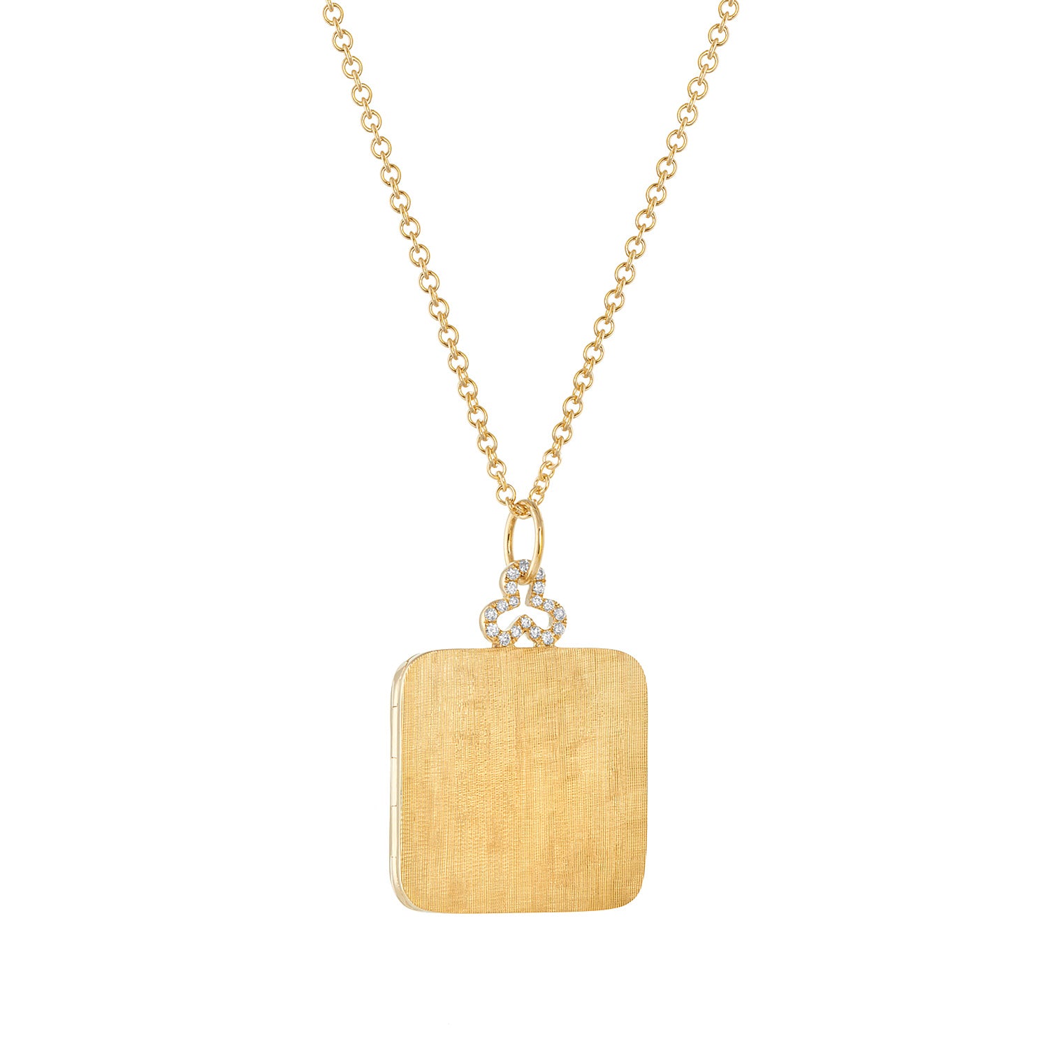 Our Deluxe Diamond Trefoil Locket in 18k gold invites the light to pour in, creating a personal sanctuary full of mesmerizing shadows and reflections. Like the trefoil in Gothic architecture, it symbolizes enlightenment and a connection to a higher power. Customize it with your own monogram, mantra, or mark - the perfect gift to self. A piece of 'forever jewelry' you'll wear forever and hand down for generations to come.
