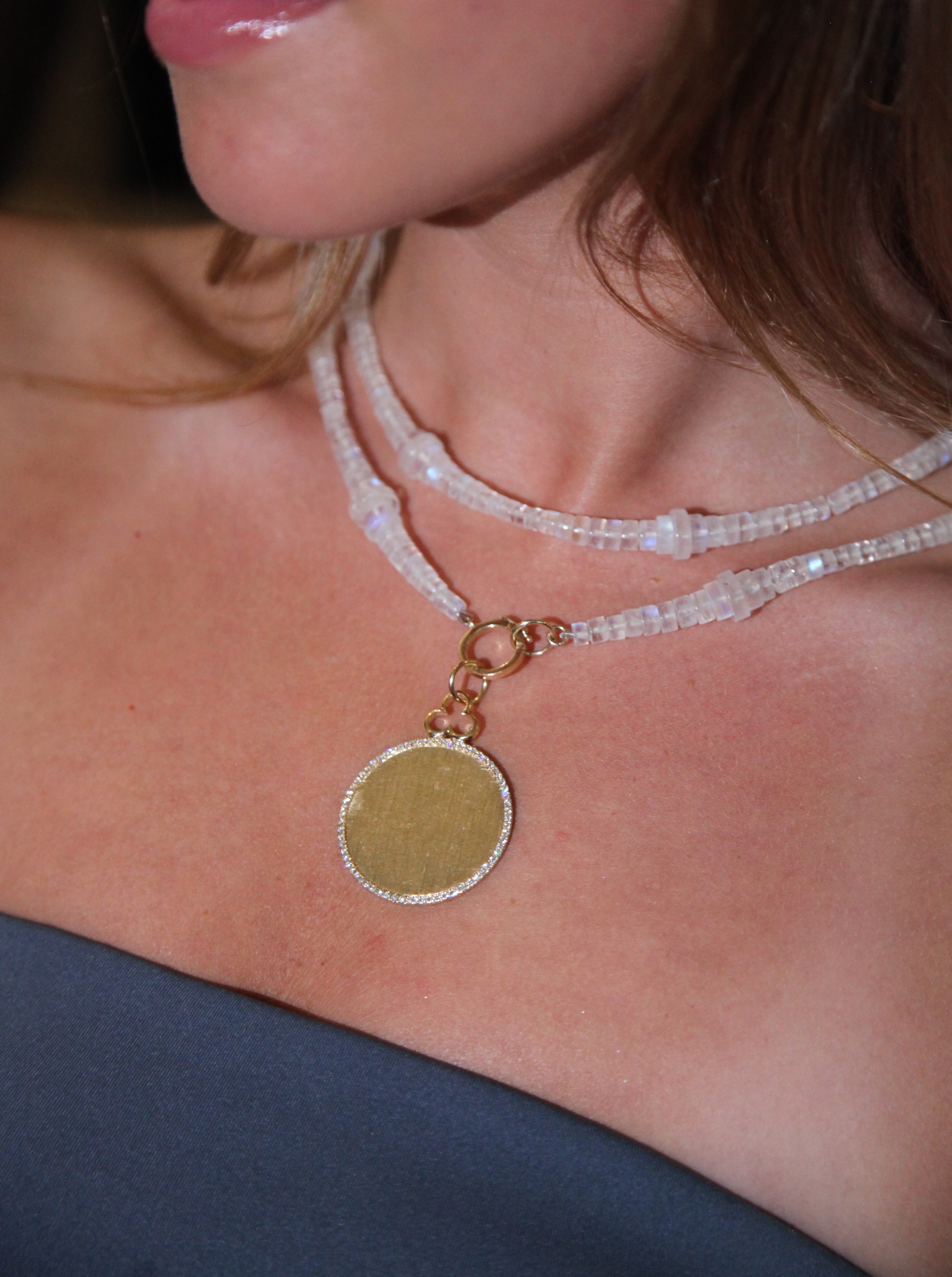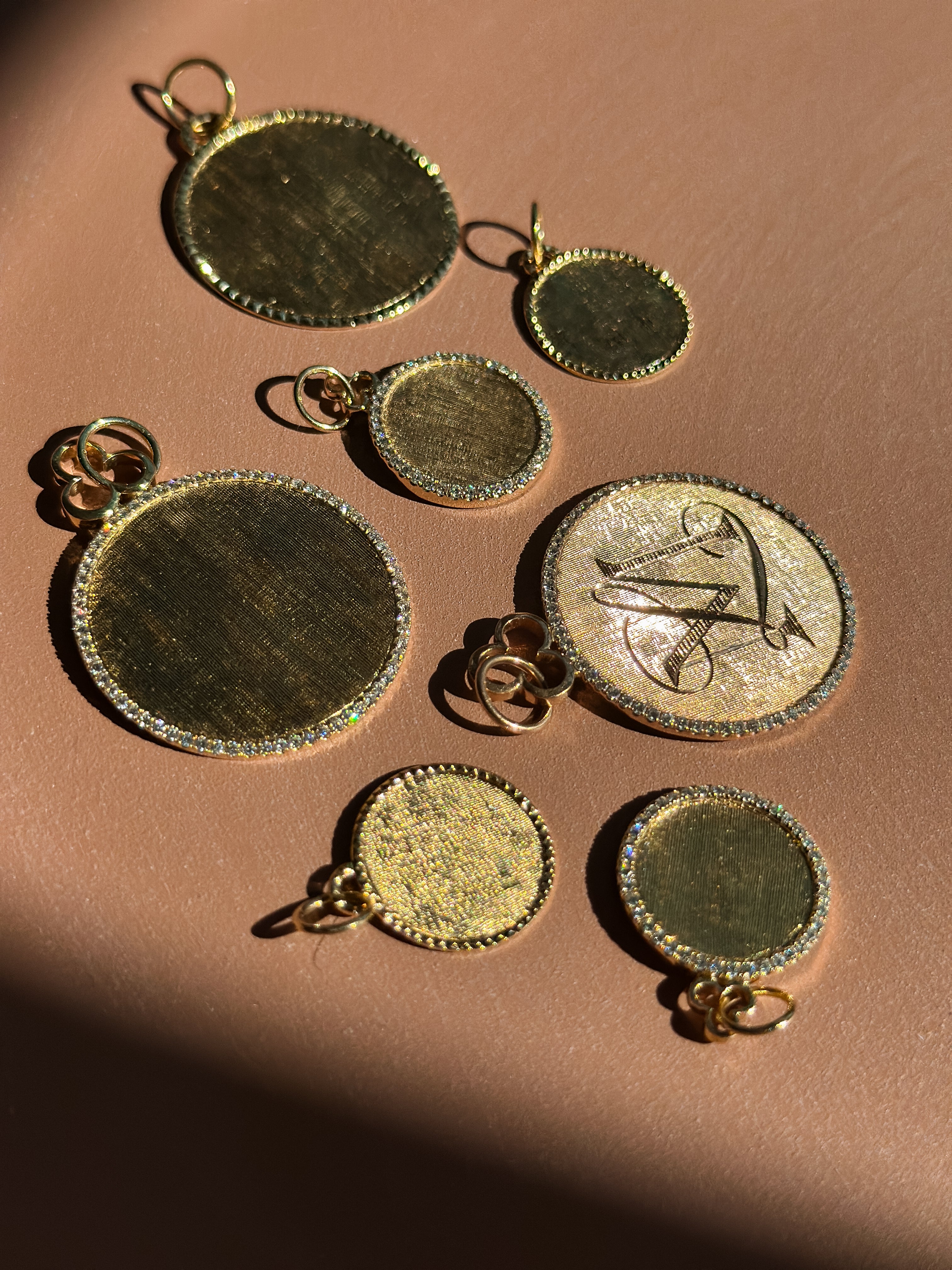 Celebrate life’s full-circle moments with our bestselling pendant charm, accented by brilliant diamonds that shimmer with every movement. Finished in our signature spun gold Florentine texture, it’s a timeless keepsake, perfect for engraving and gifting.
