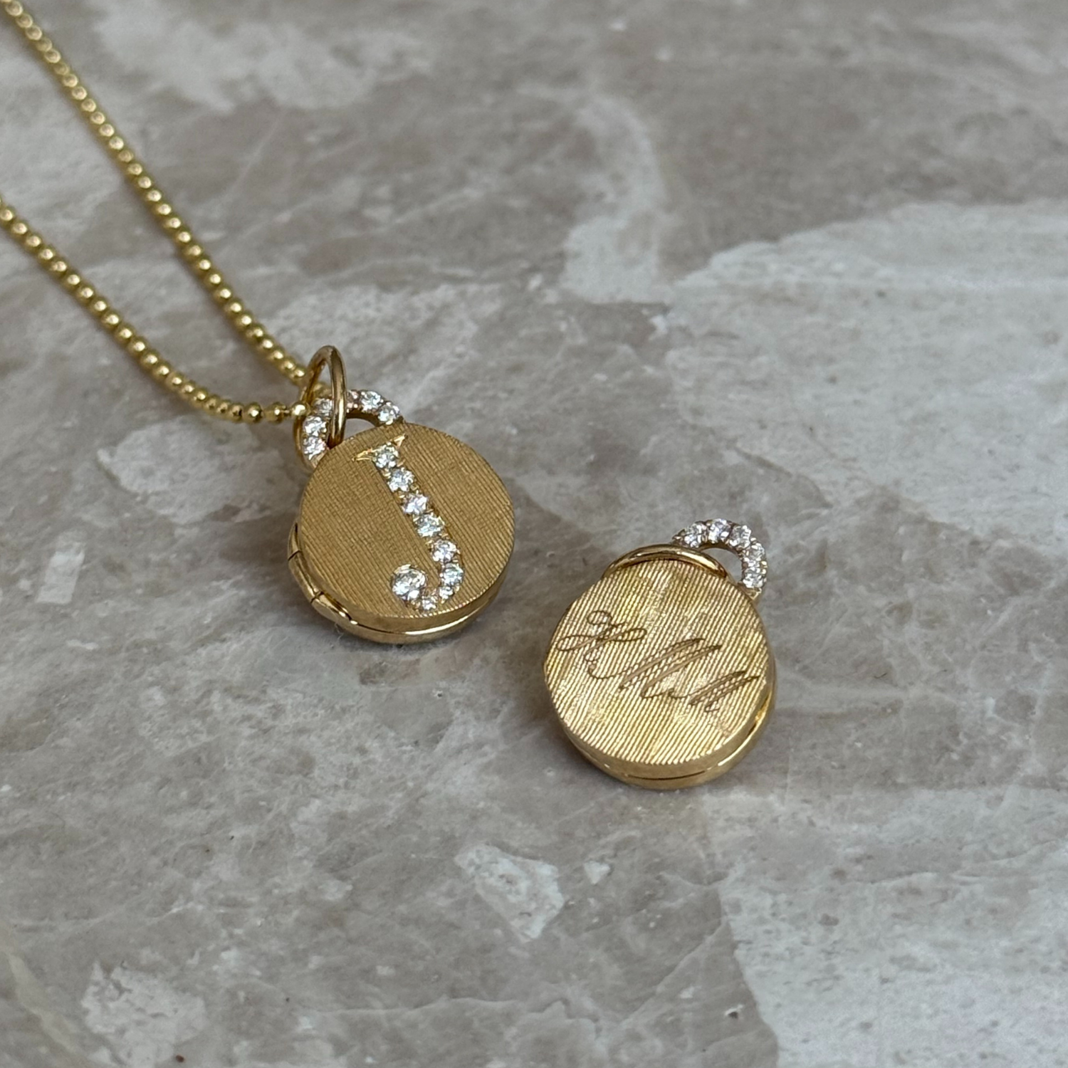 Small in size, infinite in meaning, the Mini Diamond Arch Locket is the perfect gift in miniature. Exquisitely crafted in 18k gold and double-sided with Florentine and shiny finishes, it offers effortless versatility, crowned with a radiant diamond arch. Personalize with photos, an engraved initial, date, or monogram to make it uniquely yours.