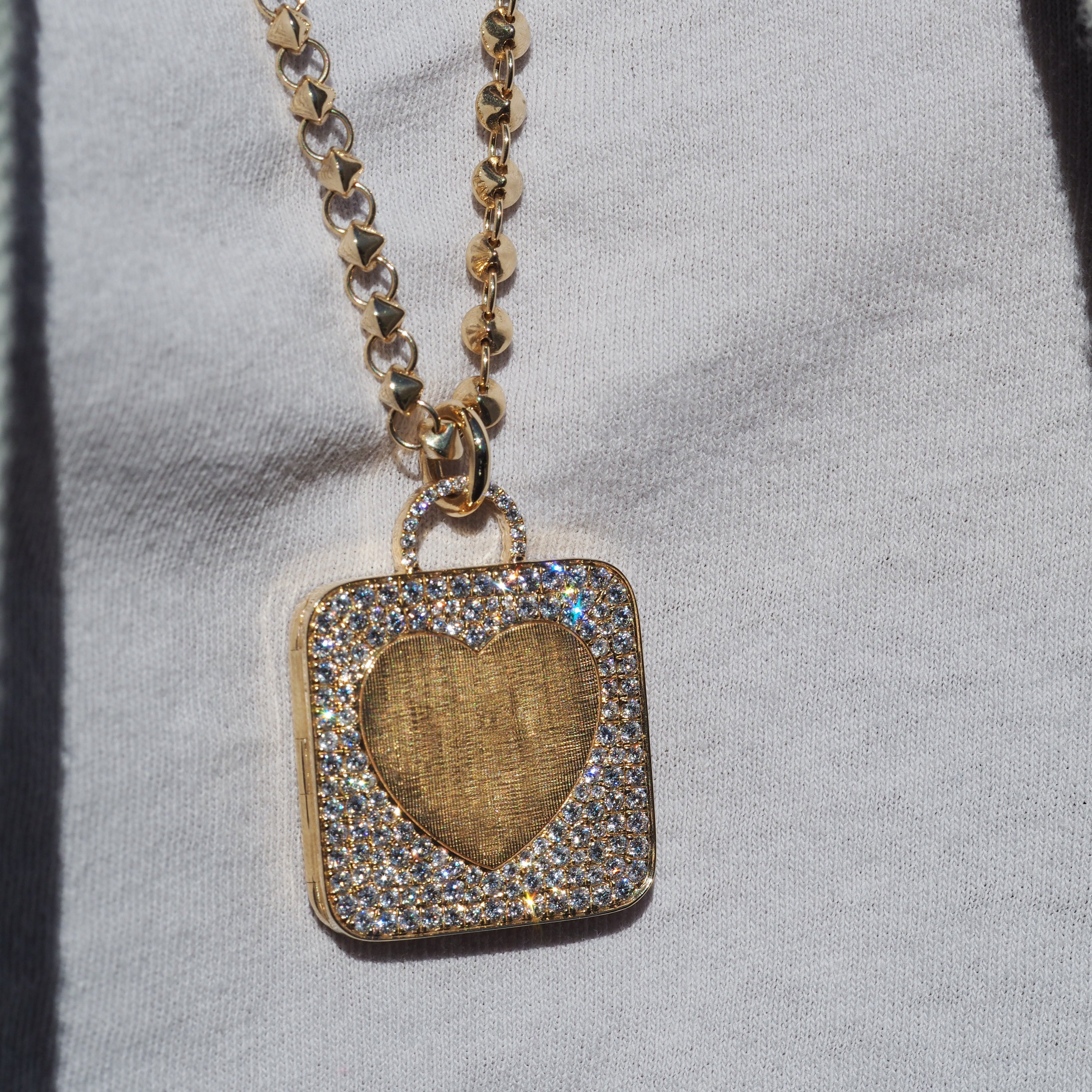 Bright, bold, and full of light, the Deluxe Daydream Locket celebrates the sparkle of daylight and the beauty of possibility. Its florentine heart center glows in solid 18k gold, ready to be engraved, diamond-set, or kept luminously untouched.