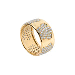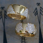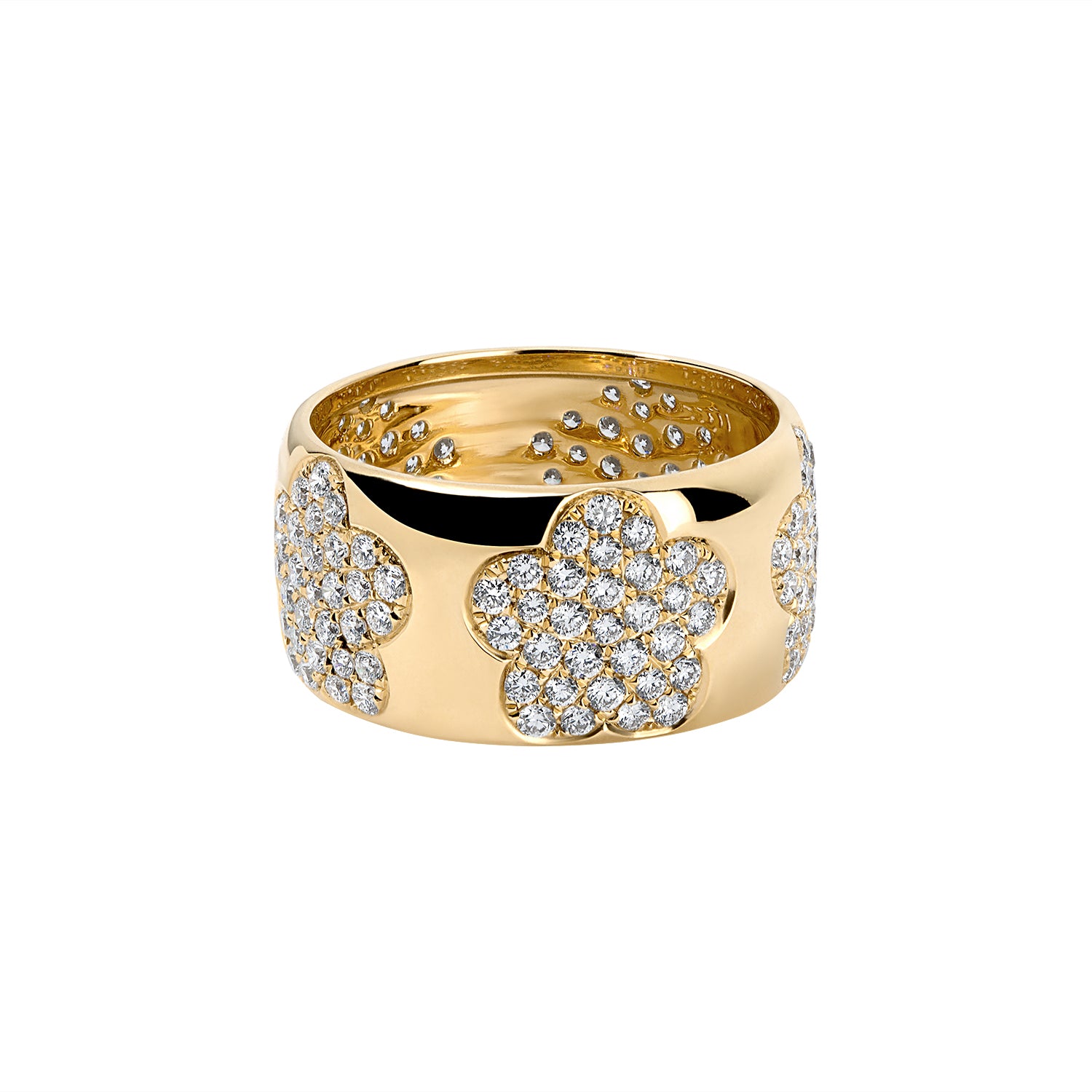Experience the thrill of everyday life when wearing our Merry Go Round Diamond Cigar Band. Crafted from 18k yellow gold, this ring is decadent in diamond pavé clovers that circle 'round for eternity.