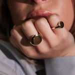 Our Halo Solid Gold Signet Ring is the perfect canvas for your monogram, message, or mantra. With its classic silhouette and smooth, substantial feel, it’s a powerful statement of self: unapologetically personal, made to leave a mark.