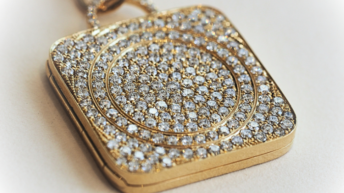 classic diamond trefoil pillow locket necklace in 18k gold with diamond number engraving