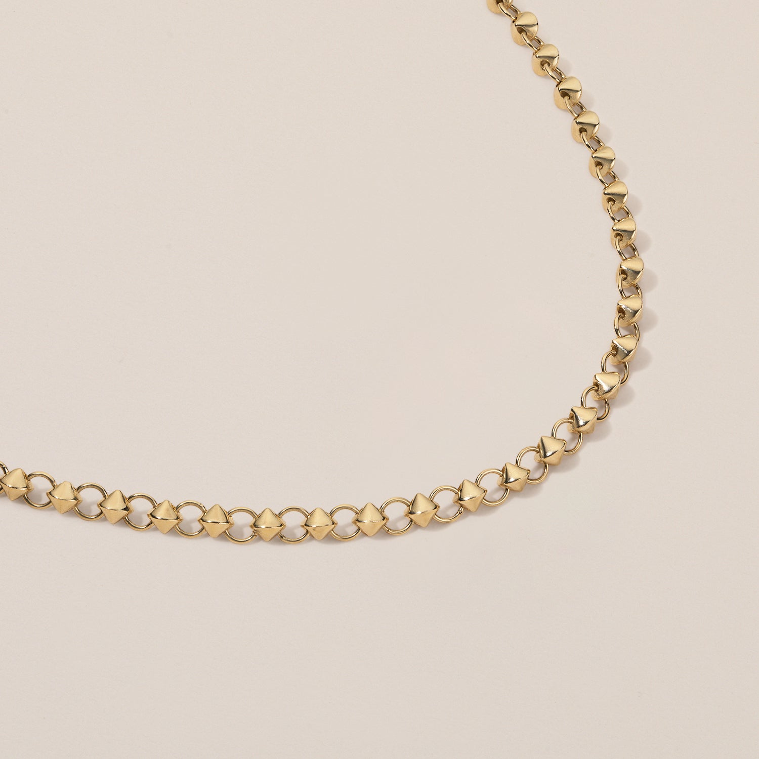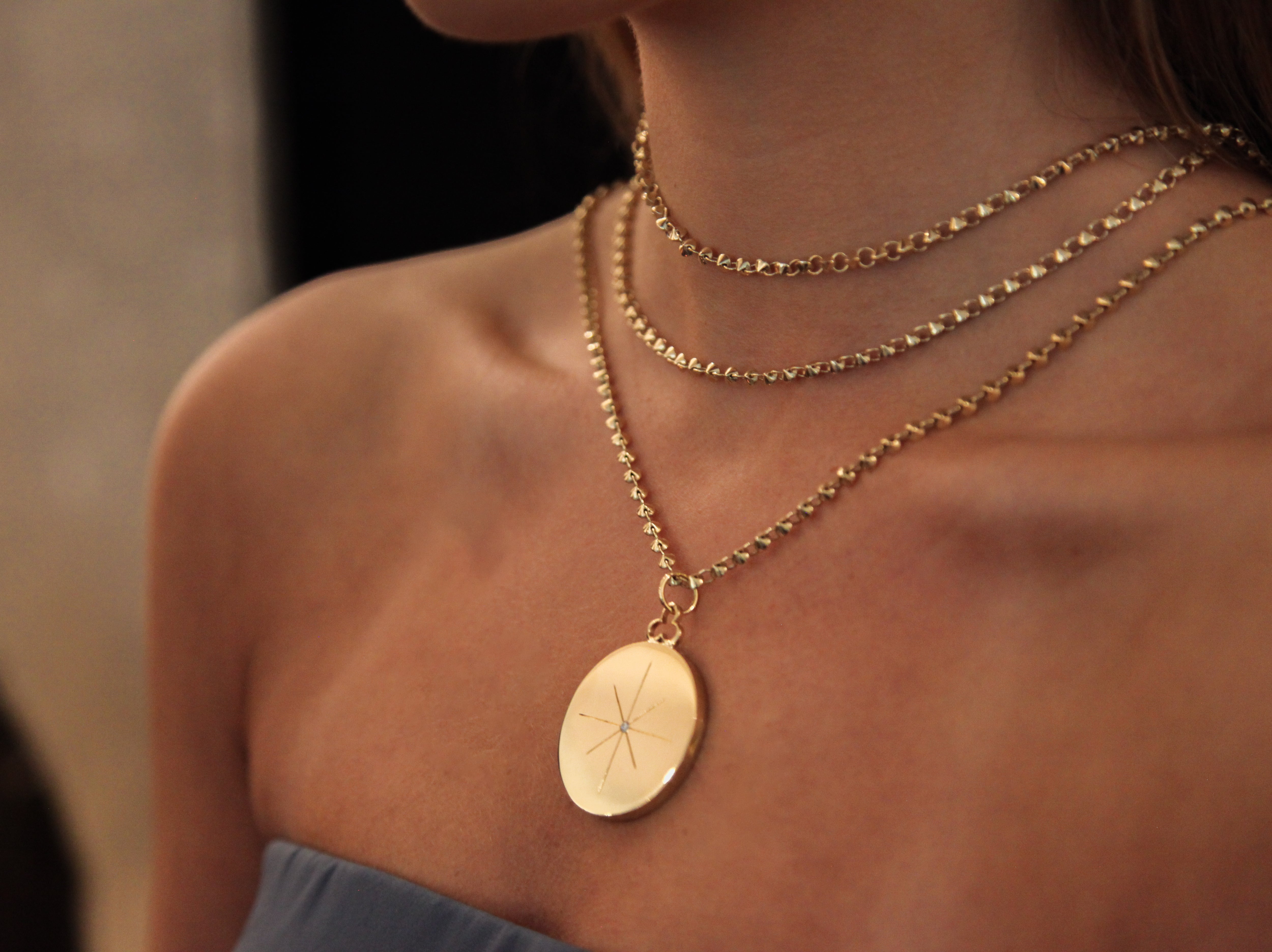 Our Marilyn Chain is the surest way to elevate your jewelry wardrobe. Crafted in 14k gold, it is edgy, opulent, and substantial. Pair with an endless combination of lockets, pendants, and your favorite charms.
