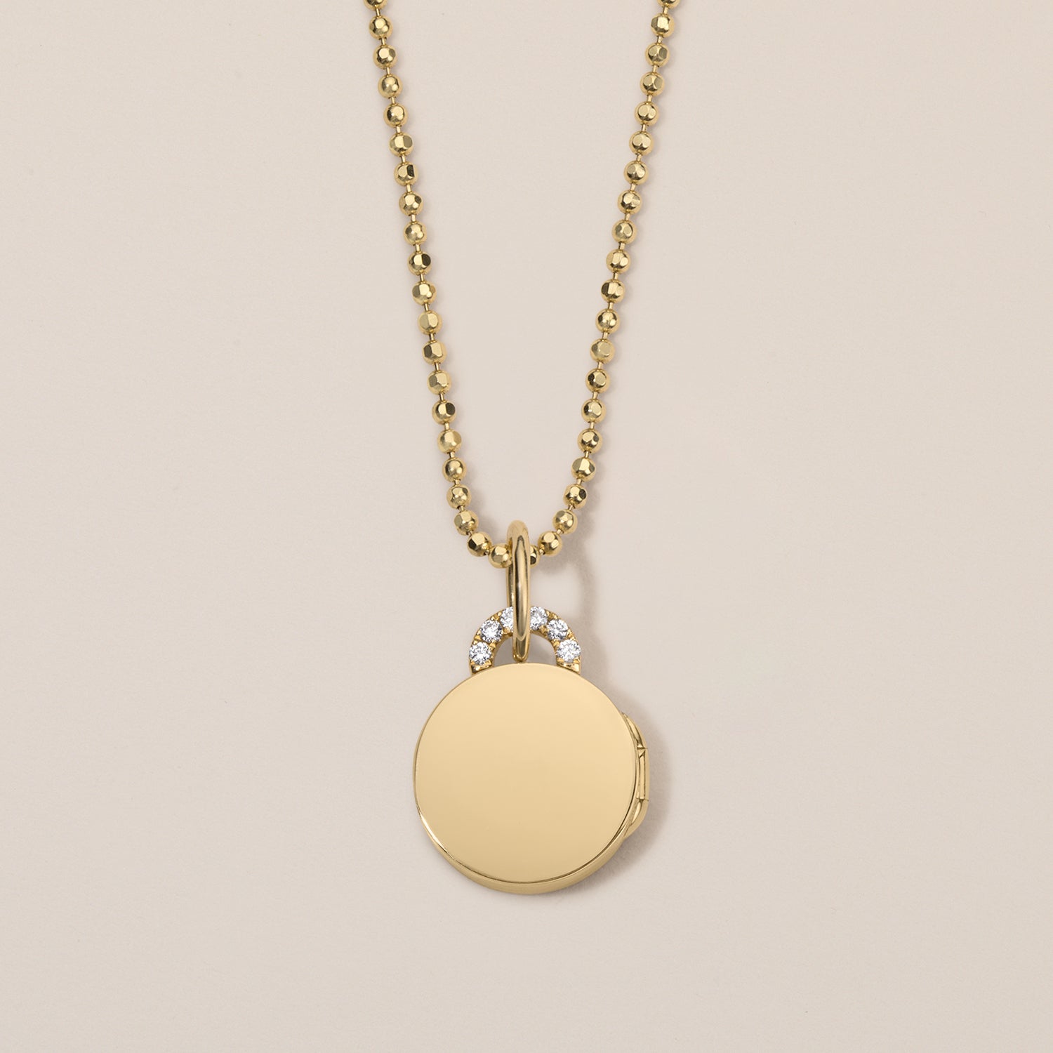 Small in size, infinite in meaning, the Mini Diamond Arch Locket is the perfect gift in miniature. Exquisitely crafted in 18k gold and double-sided with Florentine and shiny finishes, it offers effortless versatility, crowned with a radiant diamond arch. Personalize with photos, an engraved initial, date, or monogram to make it uniquely yours.