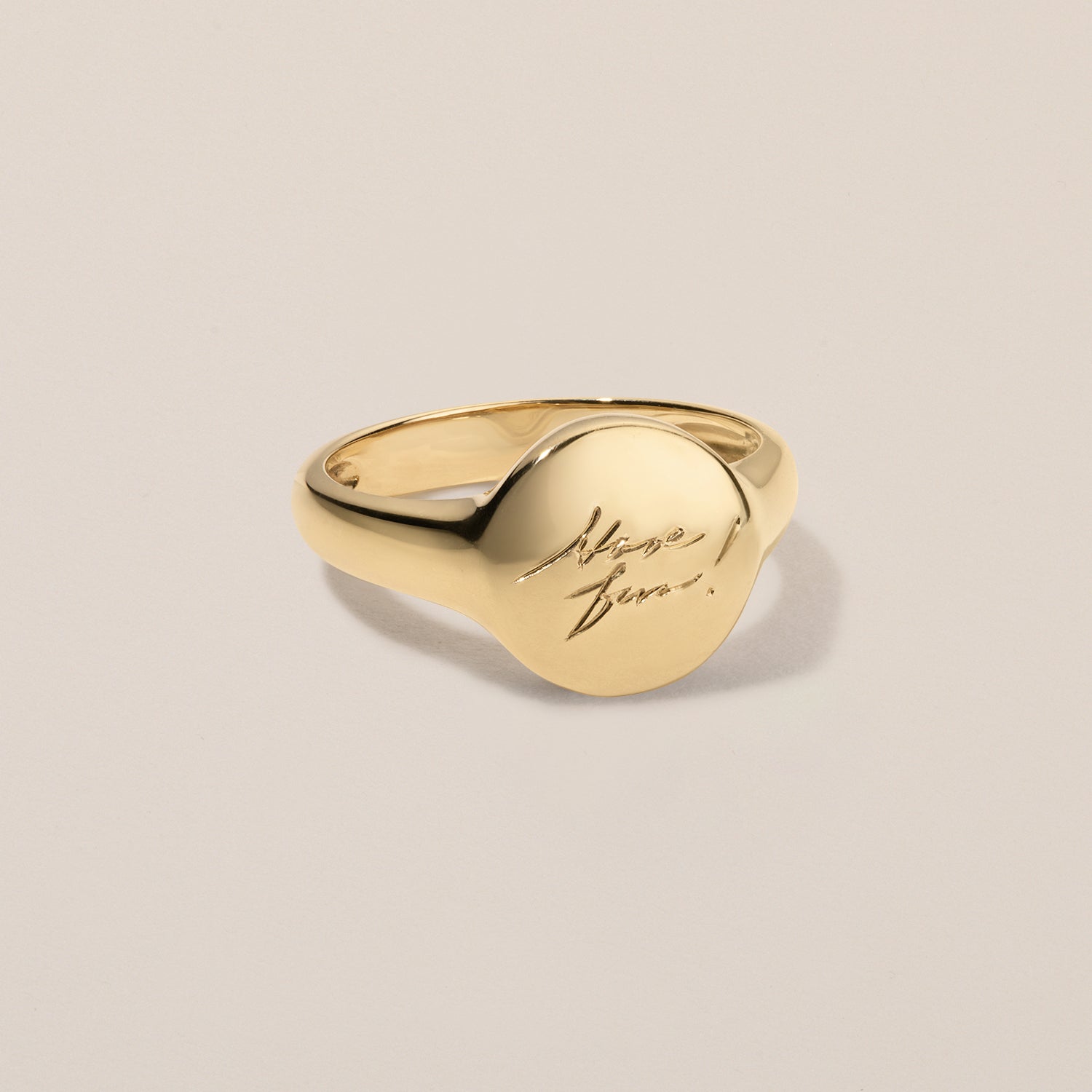 Our 18k yellow gold Pinky Halo Signet Ring is the perfect canvas for your monogram, message, or mantra. With its classic silhouette and smooth, substantial feel, it’s a powerful statement of self: unapologetically personal, made to leave a mark.