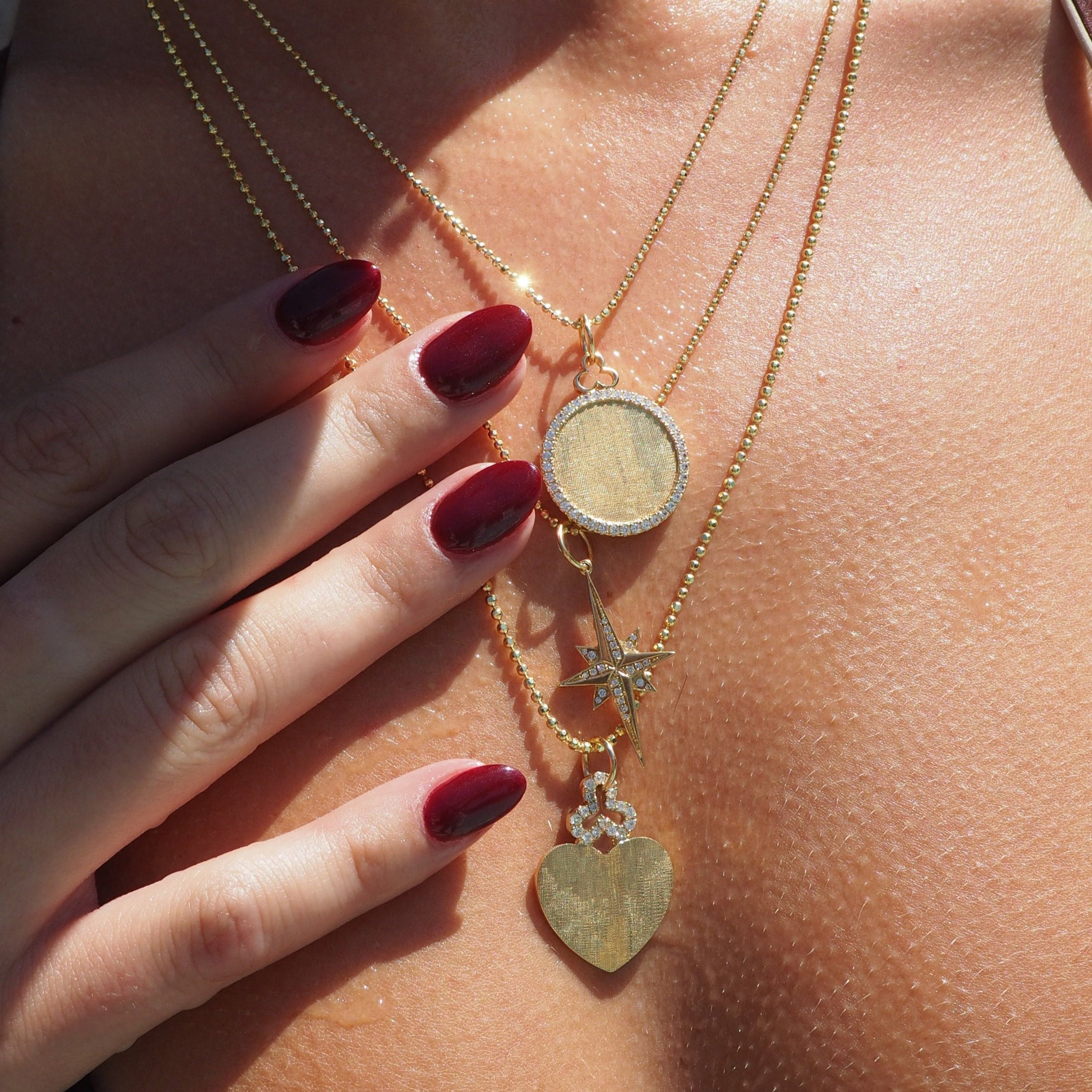 Our Classic Diamond Disc Charm radiates timeless charm enrobed in luxurious sophistication. Whether given as a present to say "I love you" or a self-treat to see yourself shine, this classic circle charm embodies the pinnacle of style and craftsmanship.