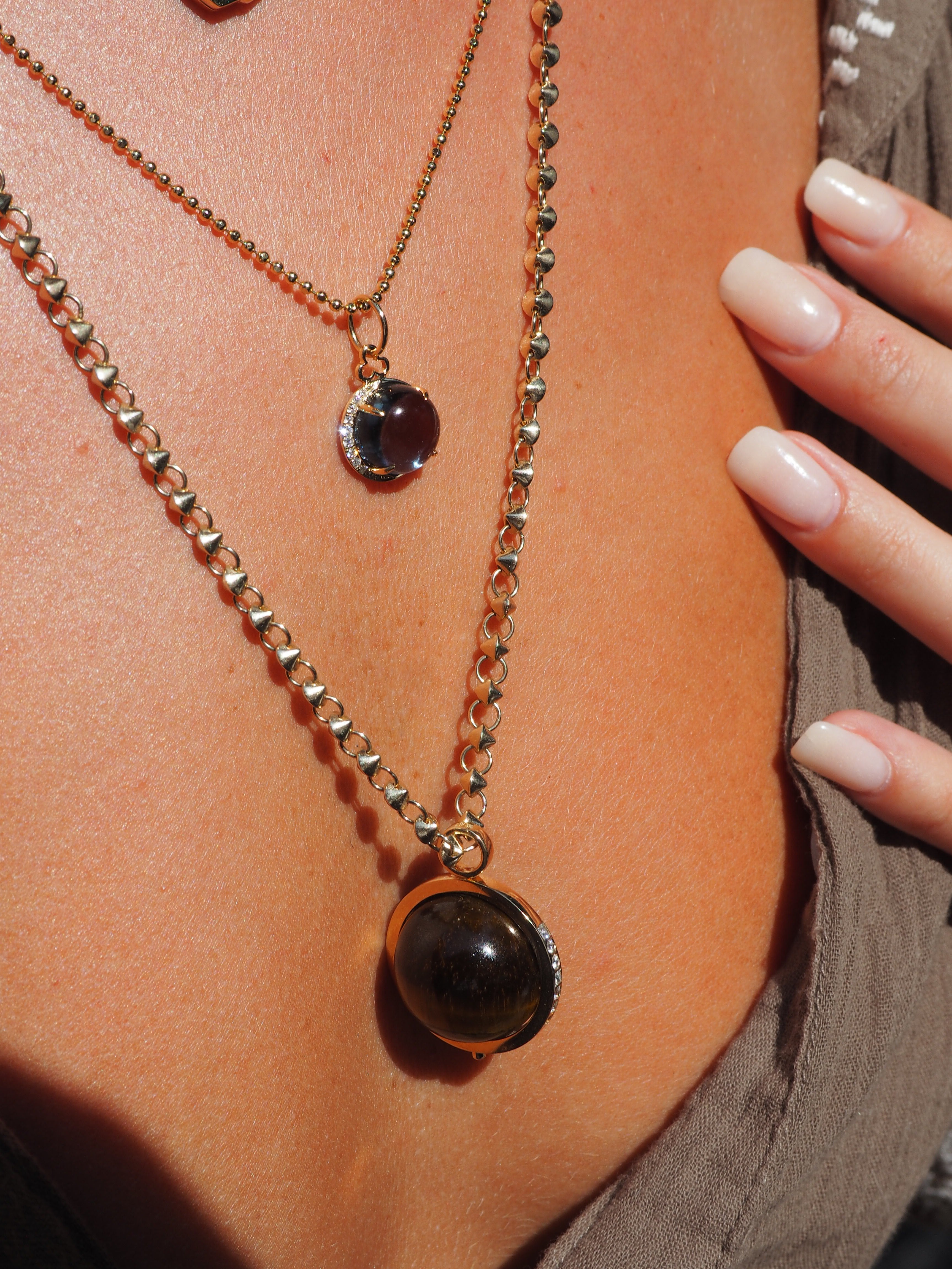 Our Cosmic Spinner — a tactile treasure wrapped in 18k gold and diamonds, designed to soothe, center, and captivate. With its smooth contours and elegant weight, this spinning charm offers a moment of calm in motion—a piece to touch, to hold, to carry with you always.