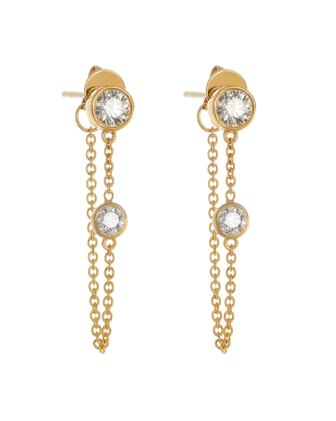 Diamond bezel-set chain loop earrings that are elegant, yet subversive. The perfect dangling earring.