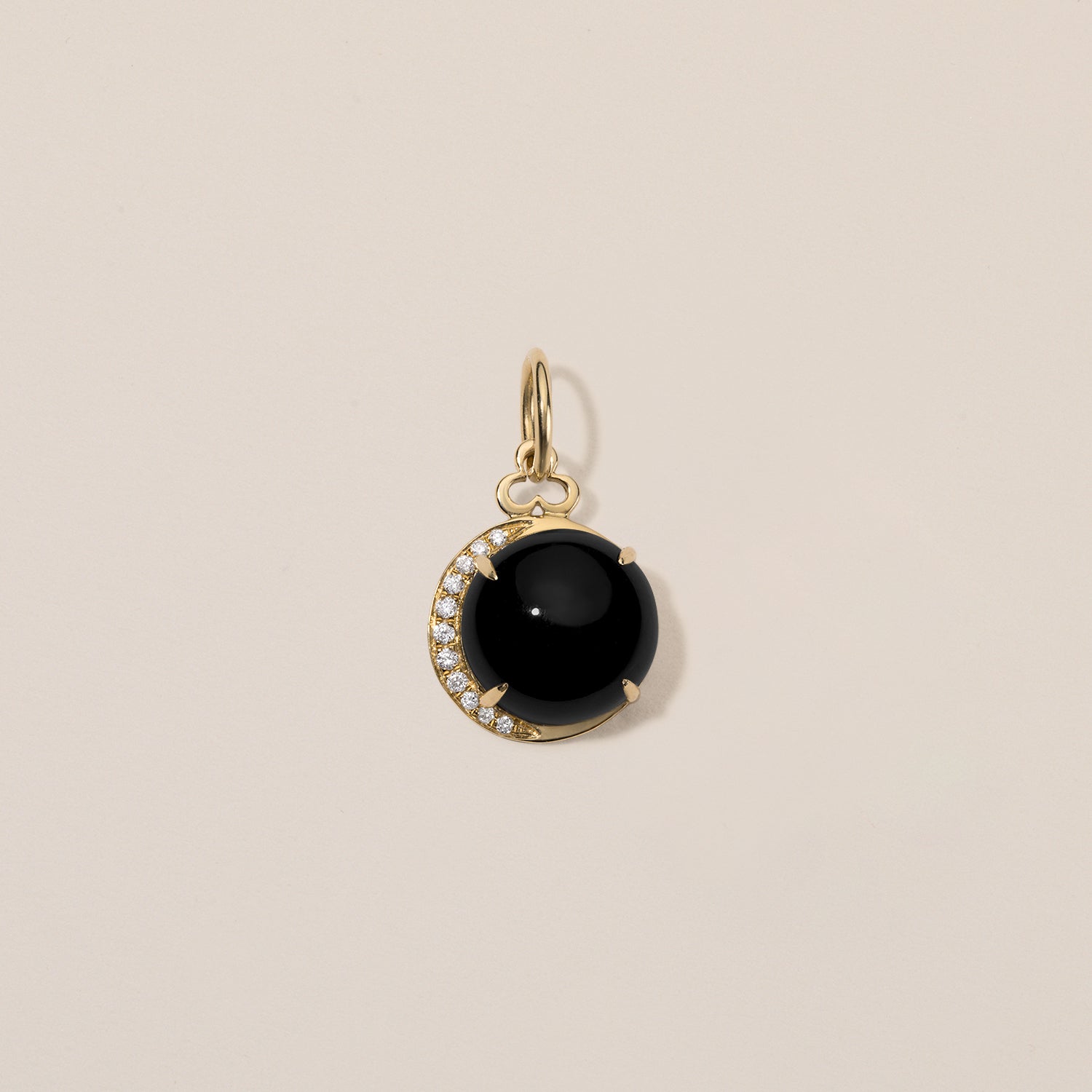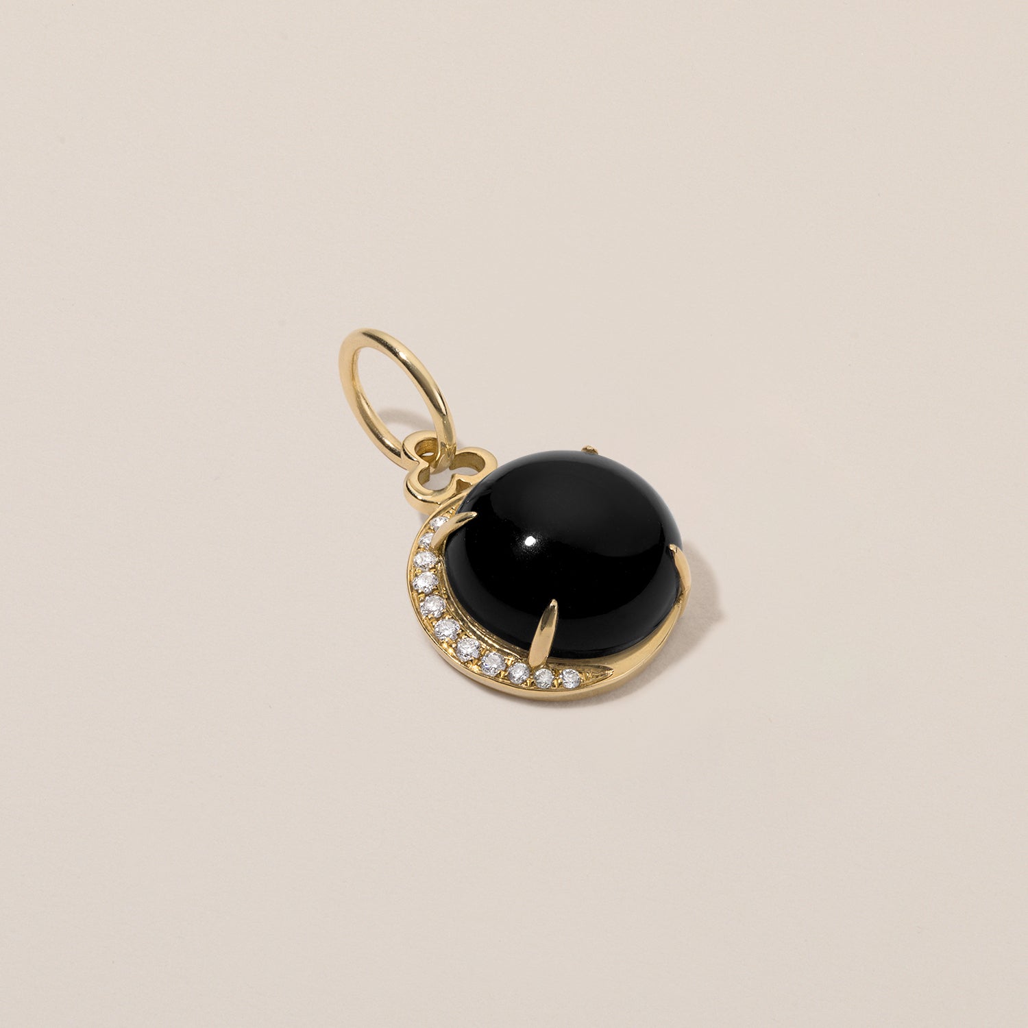 Reach for the moon and land among the stars with our Black Onyx Moon Charm. Crafted from 18k gold, the charm showcases a gorgeous cabochon center stone. Look closely and you'll notice that the diamond half halo is actually a crescent moon.