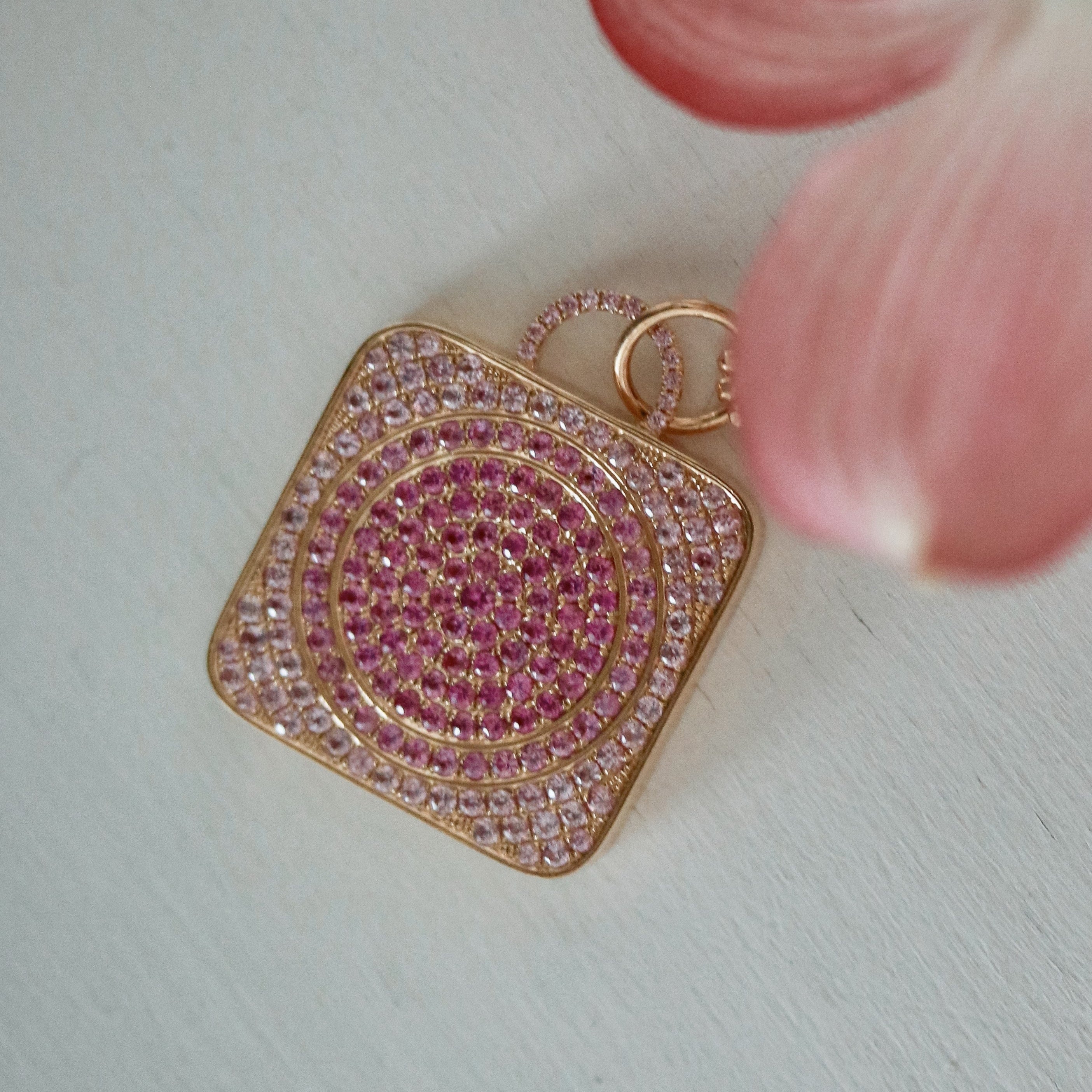The Berry Bowl Voyage Locket pays homage to the elegance and excitement of the travel scene during the 1970s. Embellished with head-turning pink sapphires in an intricate pattern, this suitcase-shaped locket captures the spirit of a bygone era.